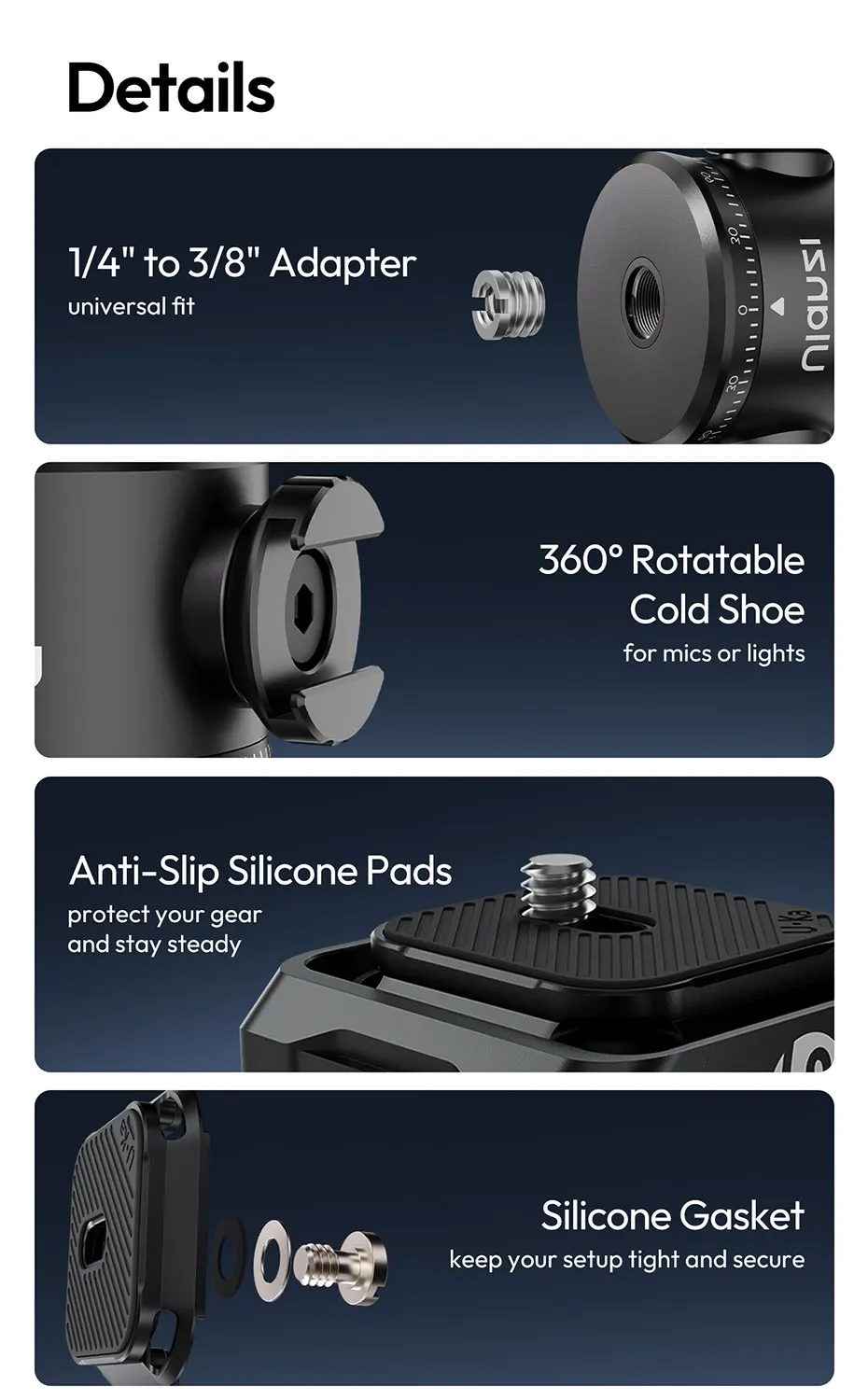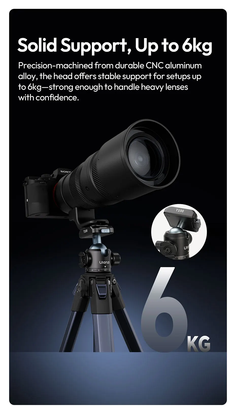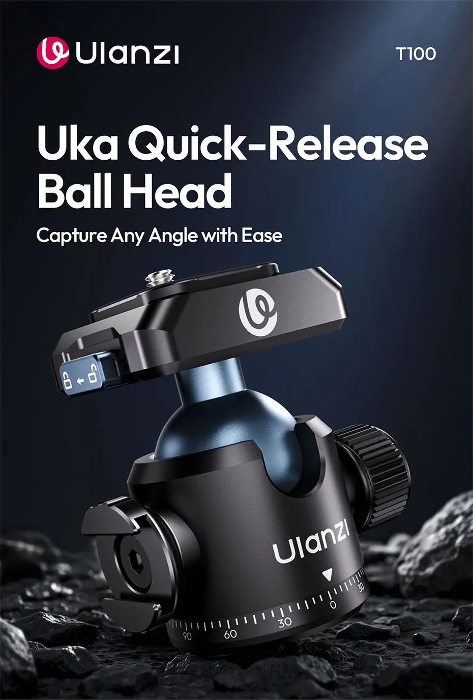 Ulanzi T100 Uka interruptor Horizontal y Vertical de cabeza esférica ajustable de liberación rápida 360 para soporte de montaje en trípode carga de la serie Uka 6KG