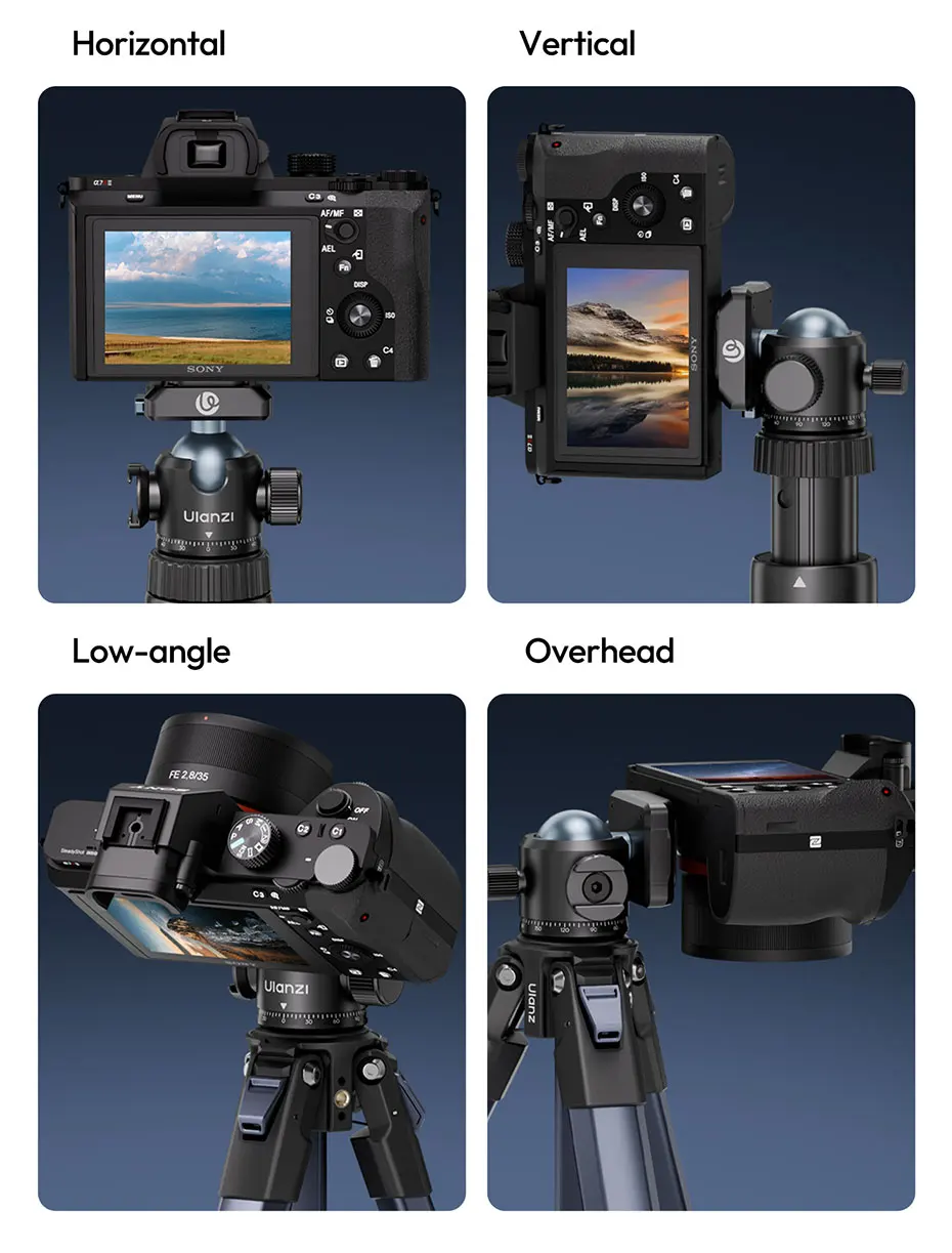 Ulanzi T100 Uka Interruptor horizontal y vertical con cabezal de bola ajustable 360 de liberación rápida para soporte de montaje en trípode Serie Uka Carga de 6 kg