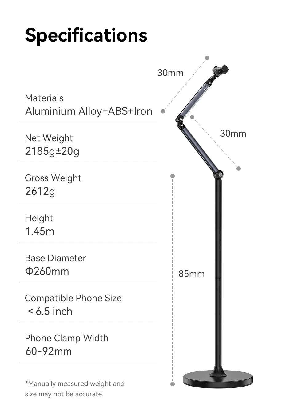 Comprar Ulanzi TH07 Soporte de piso superior para teléfono celular Soporte de teléfono ajustable en ángulo Máximo 1,45 m para teléfonos inteligentes de 50-92 mm