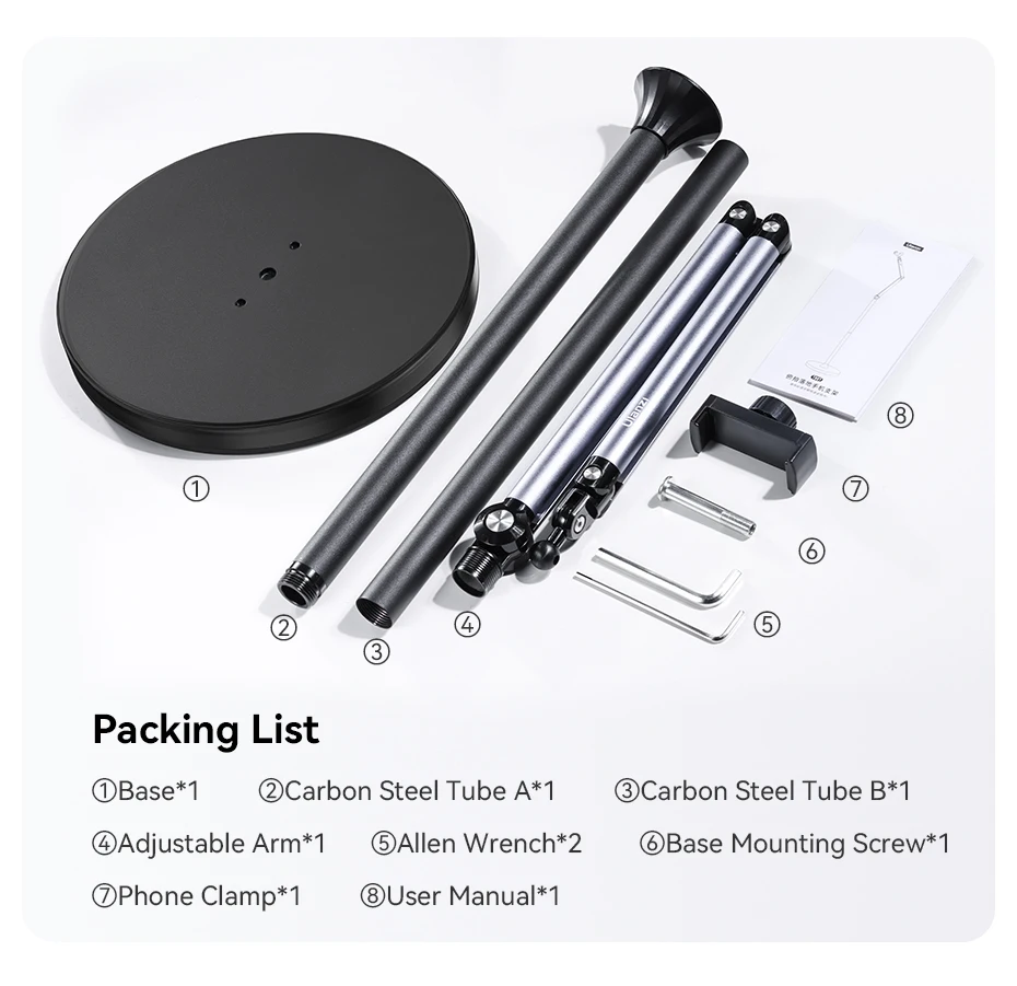 Con brazos ultraflexibles y juntas universales, puede ajustar sin esfuerzo el soporte para tomas aéreas o de ángulo bajo como desee.