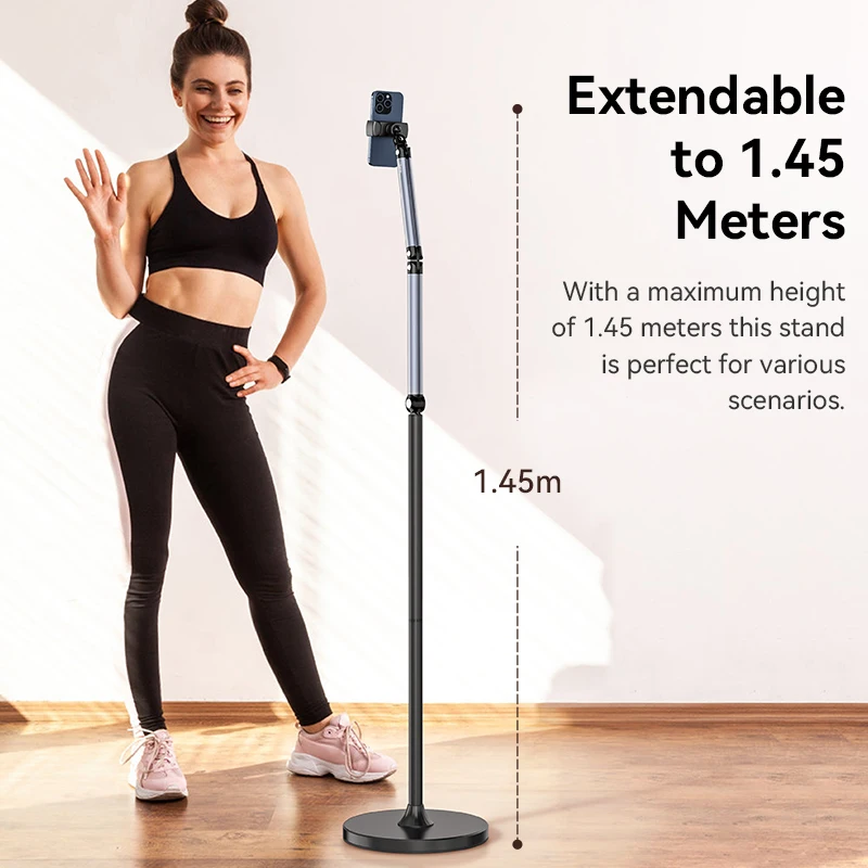 Con una altura máxima de 1,45 metros, este soporte es perfecto para diversos escenarios.