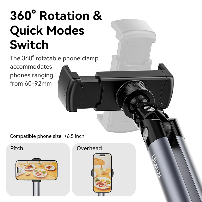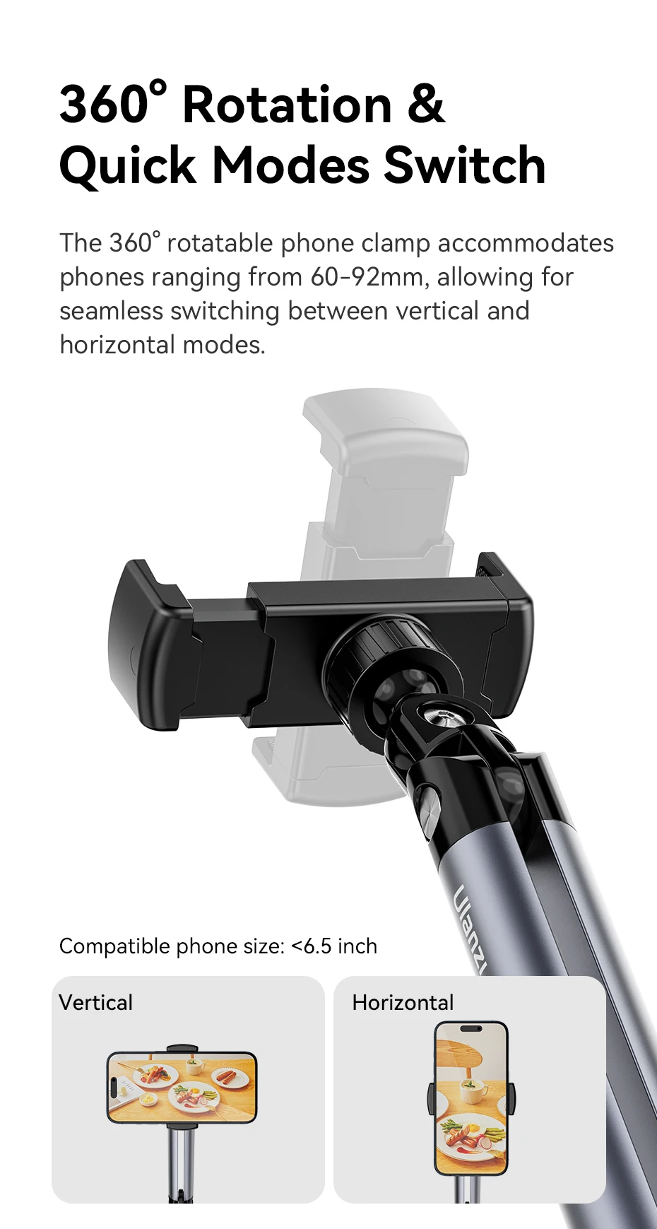 Comprar Ulanzi TH07 Soporte de piso superior para teléfono celular Soporte de teléfono ajustable en ángulo Máximo 1,45 m para teléfonos inteligentes de 50-92 mm