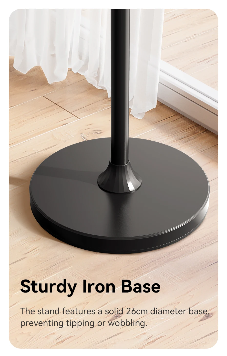 El soporte cuenta con una base sólida de 26 cm de diámetro que evita que se vuelque o se tambalee.