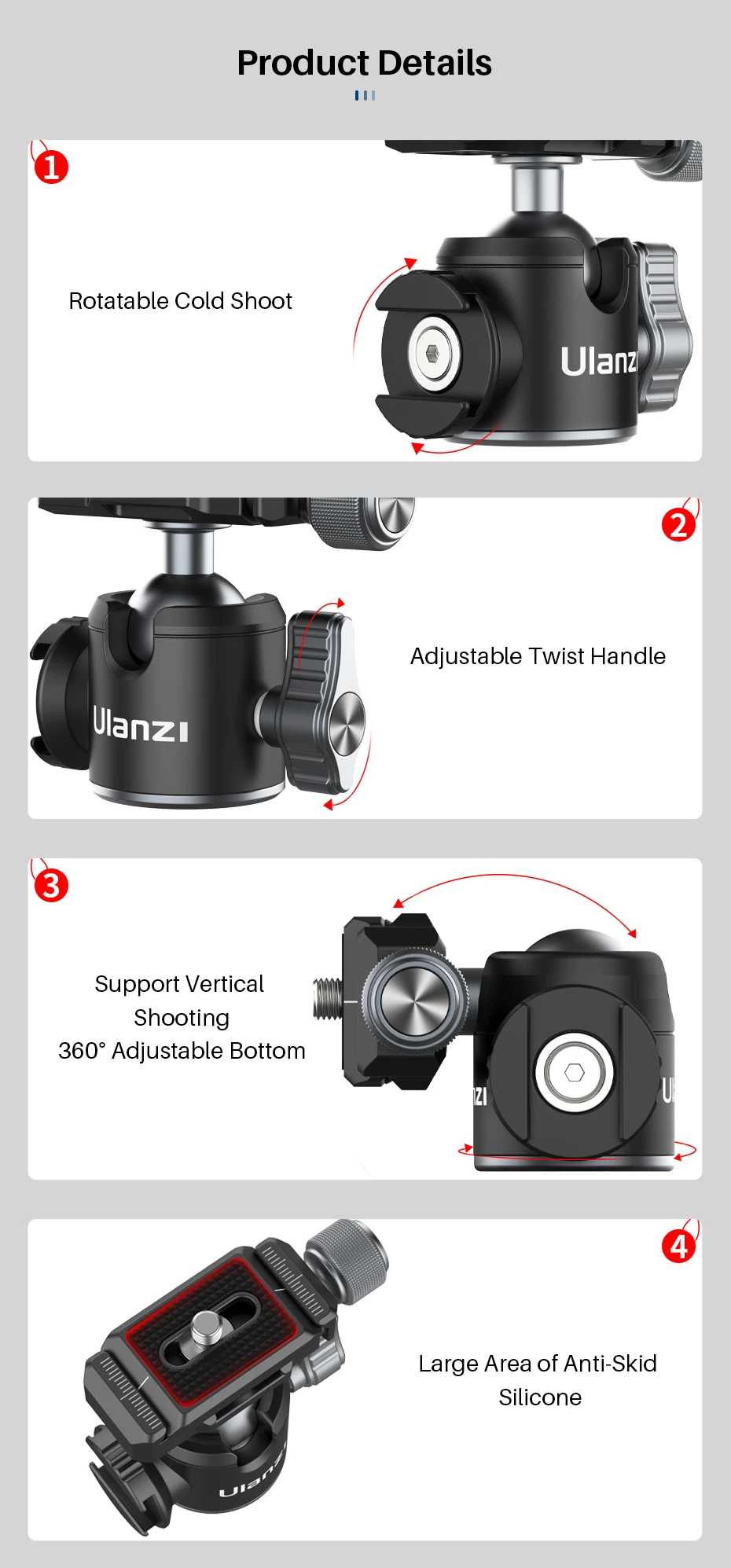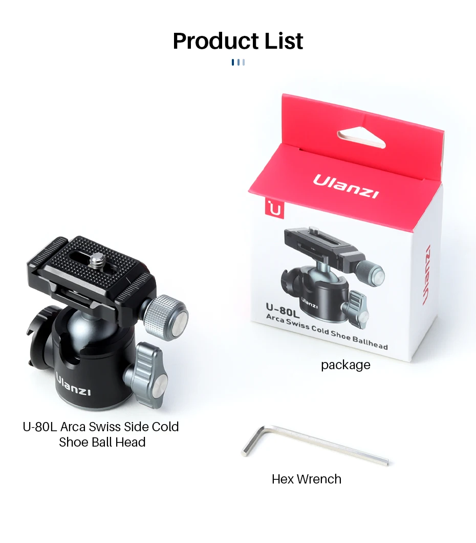 Ulanzi-trípode U-80L Arca Swill, cabeza de bola, placa de Arca, cabeza de bola, extensión de zapata fría para micrófono, cámara de luz LED