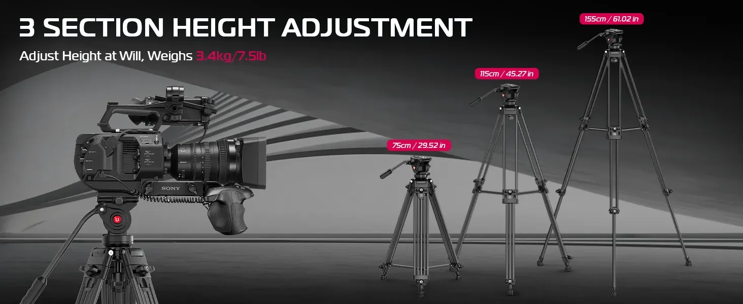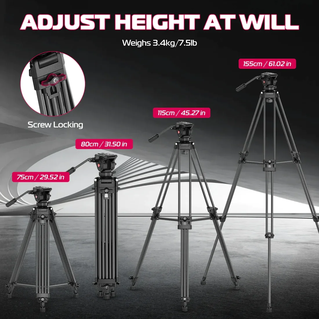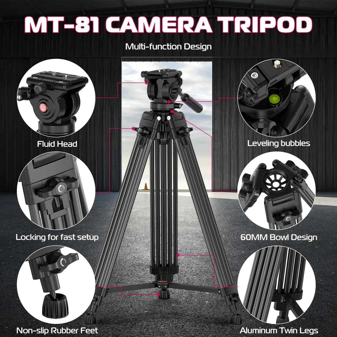 Trípode universal para vídeo profesional: Captura fotos y vídeos estables con facilidad usando este robusto trípode, perfecto para una variedad de entornos, incluyendo eventos deportivos, bodas, paisajes, retratos y fotografía de productos. El asiento ajustable del cuenco garantiza la estabilidad en cualquier superficie, por lo que es ideal para expediciones de tiro al aire libre.