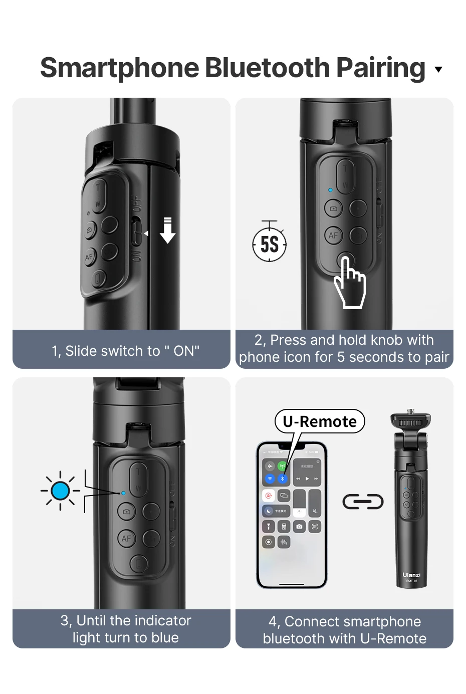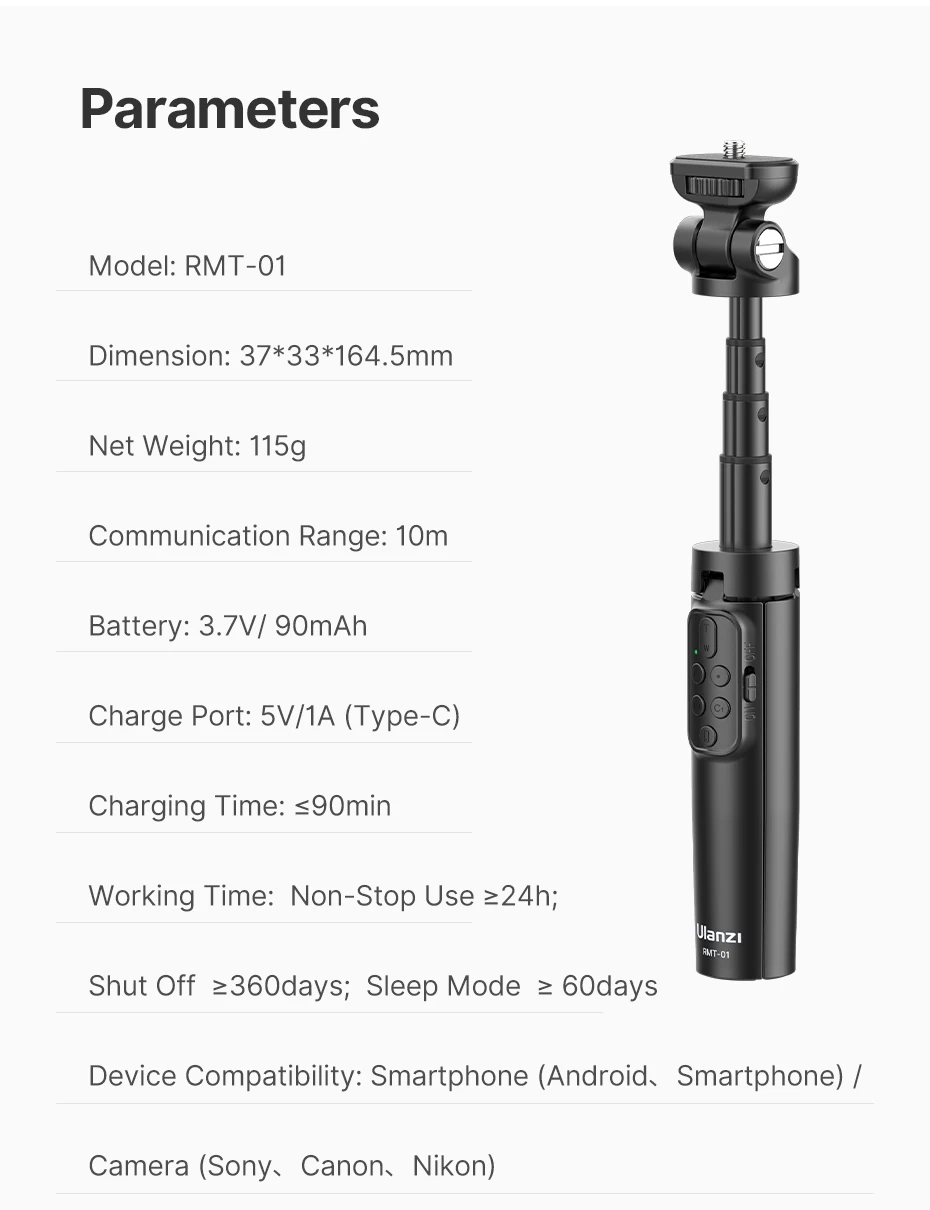 Comprar Ulanzi-trípode de cámara con Control remoto, dispositivo inalámbrico con Bluetooth, para teléfonos inteligentes, compatible con Sony/Canon/Nikon/iPhone/Android, RMT-01
