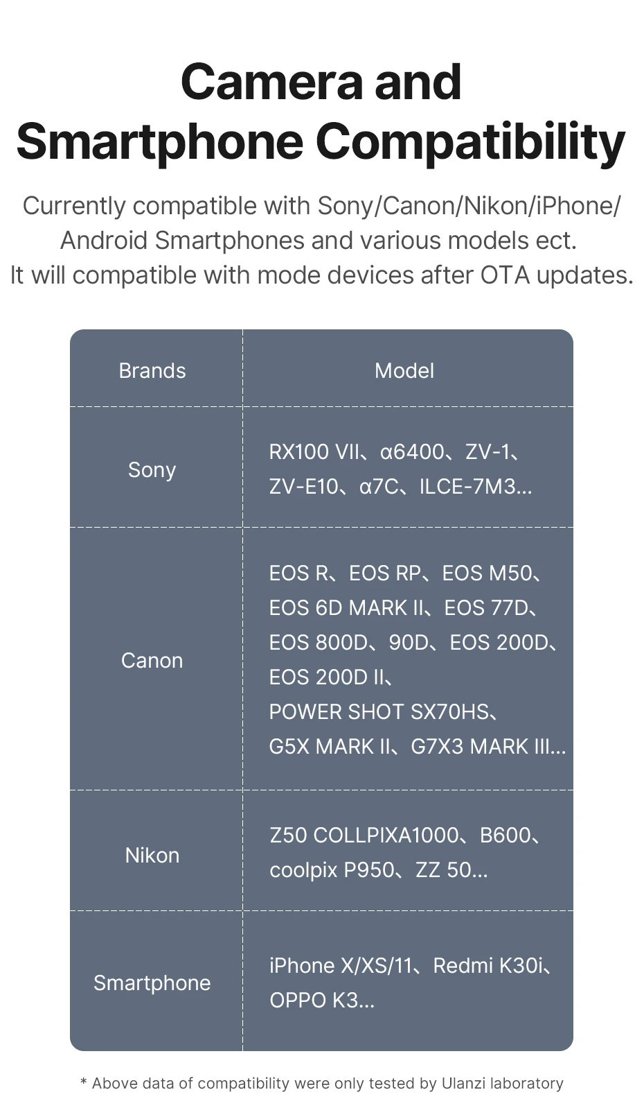 Compatibilidad de dispositivos: Smartphone (Android 、 Smartphone) /cámara (Sony 、 Canon 、 Nikon)