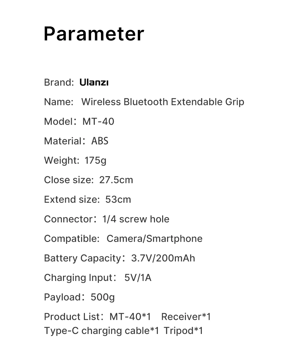 Comprar Ulanzi-trípode inalámbrico con Bluetooth para cámara deportiva, Selfie de agarre para MT-40, control remoto para SONY, ZVE-10, teléfono inteligente, Gopro