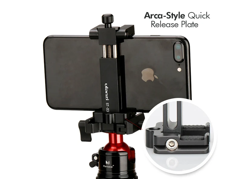 Universal----- Sostiene cualquier teléfono inteligente de 2,28 "a 4,1" de ancho.Compatible con teléfonos inteligentes de 4,3 pulgadas a 7 pulgadas... El soporte para teléfono móvil de la se puede conectar a cualquier trípode estándar (1/4-20), y puede asegurar su teléfono móvil para fotos, vídeos o para ser utilizado como cámara web o GPS de coche.