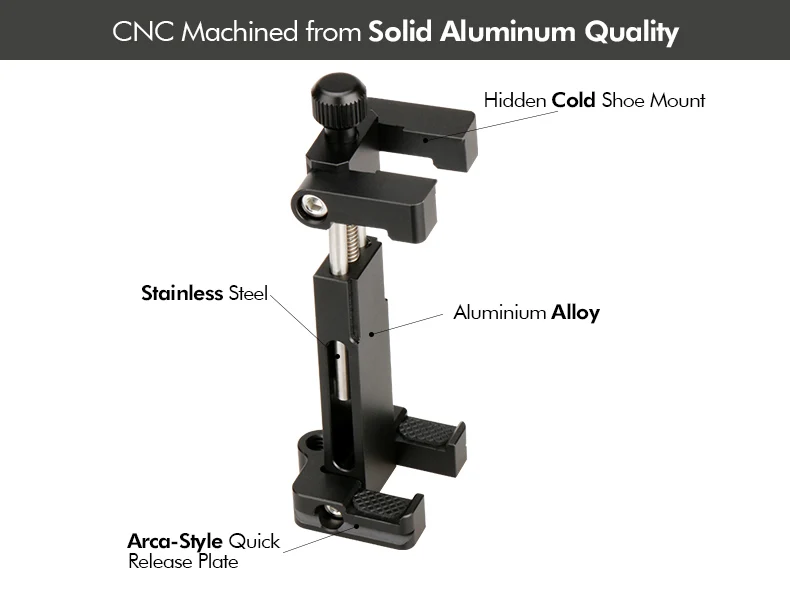 CNC de metal hecho----- Adaptador de montaje en trípode para teléfono de alta calidad y seguridad. CNC mecanizado de aleación de aluminio aeroespacial T6061.