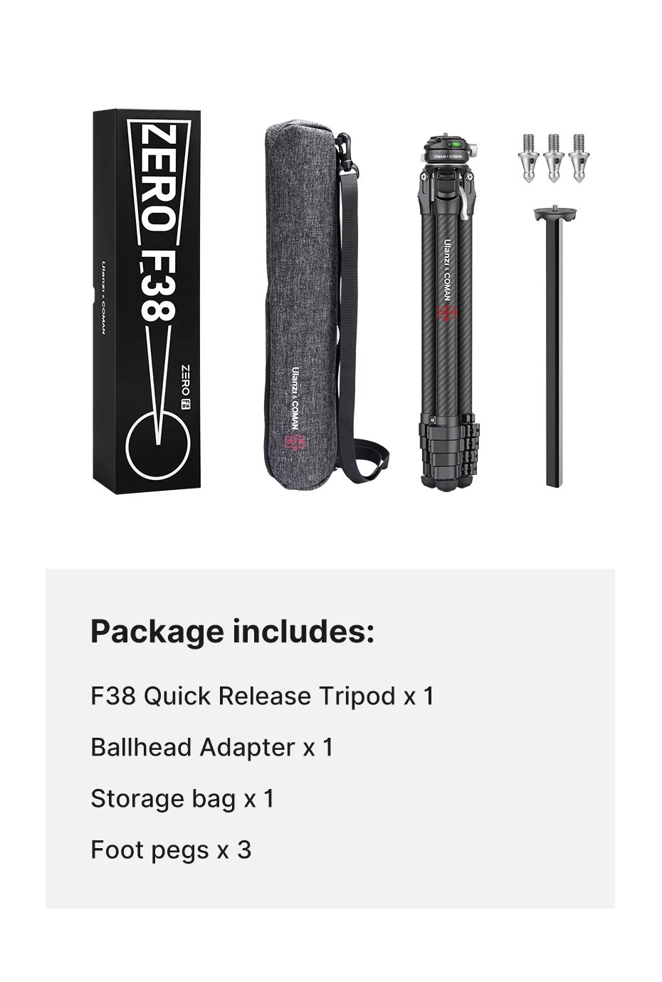 Comprar Ulanzi-trípode de viaje ligero Zero F38, fibra de carbono completa, profesional, para exteriores, monopié con cabezal de bola de liberación rápida F38