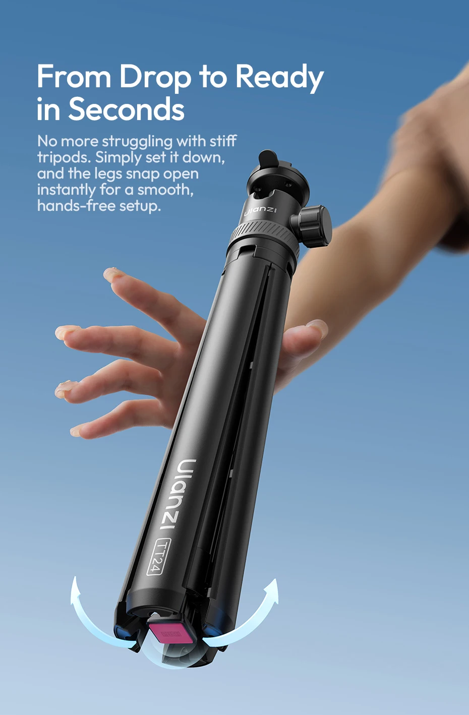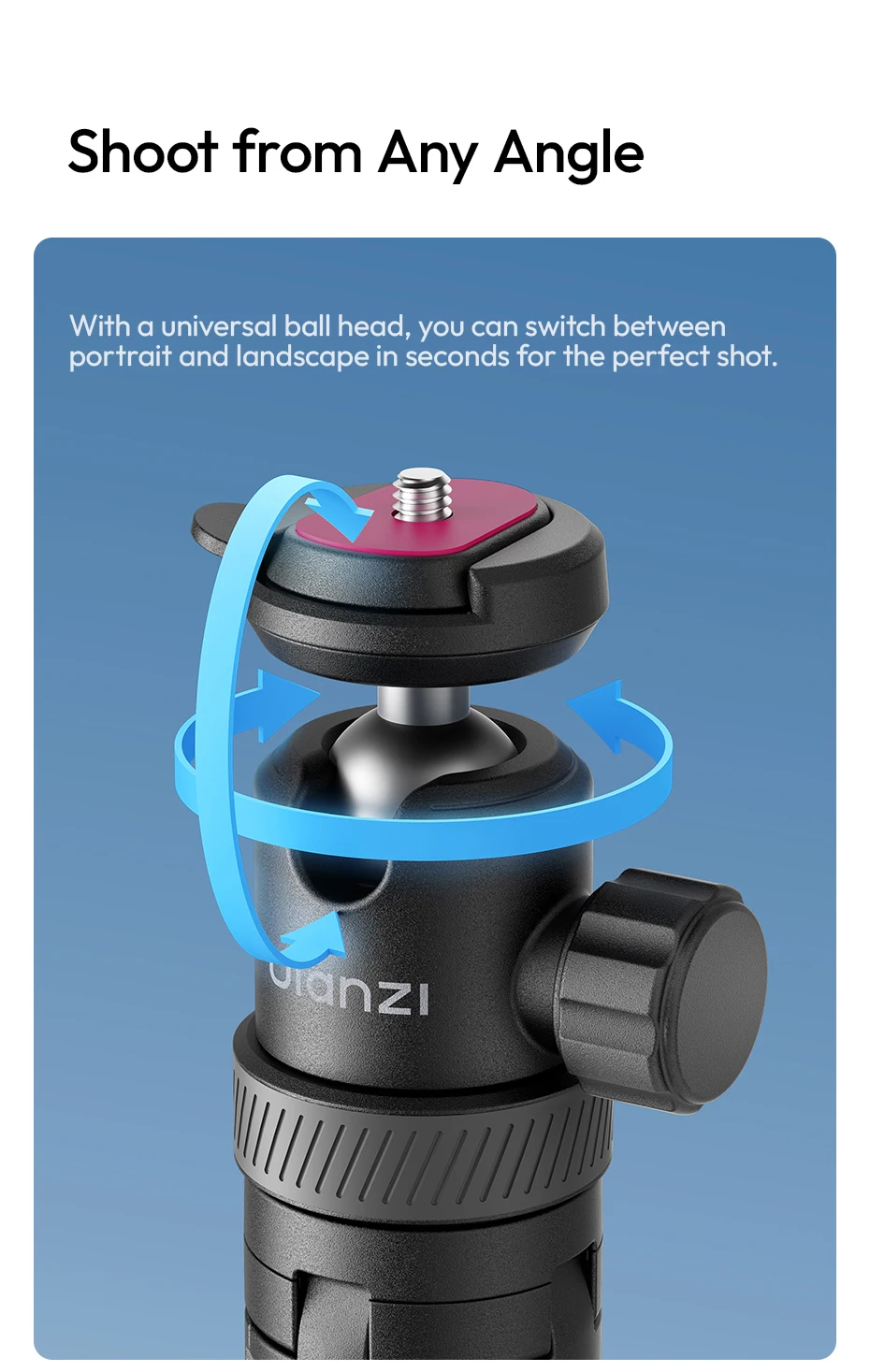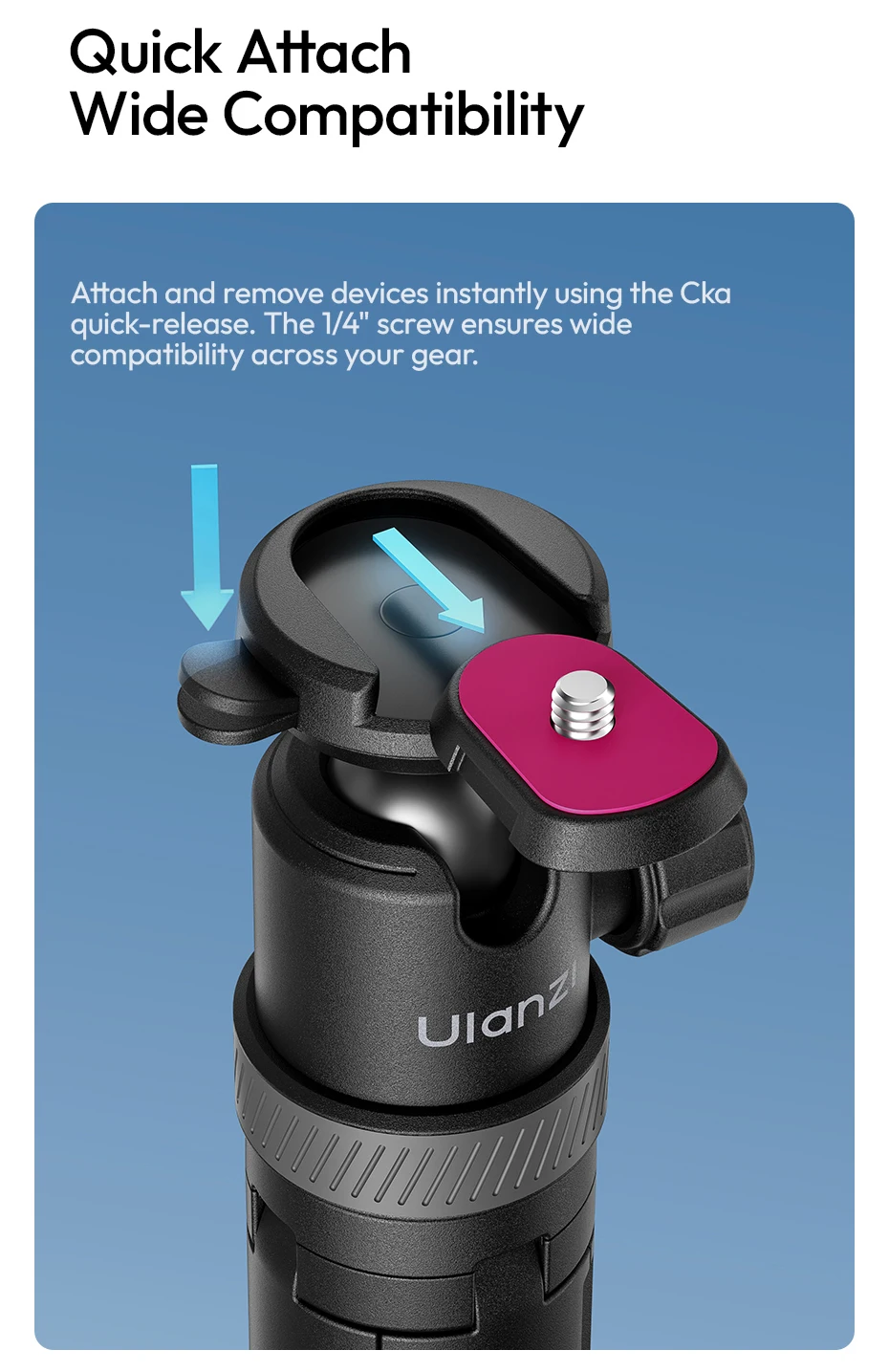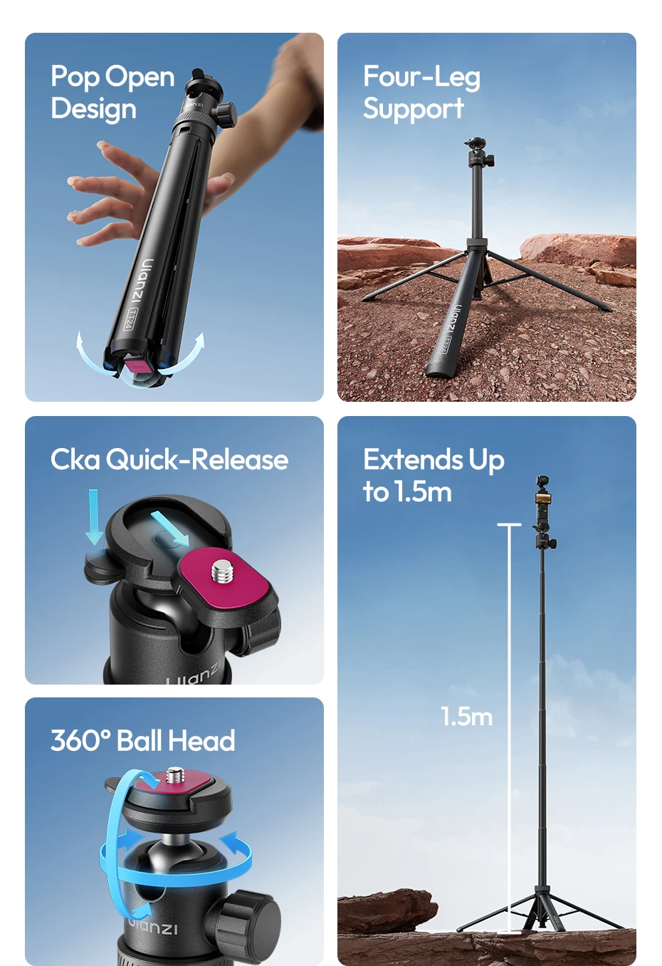 Ulanzi TT24 1.5M Cka Selfie Stick de liberación rápida trípode de cuatro patas para teléfono móvil Gopro cámara de acción con 360 ° Rotación