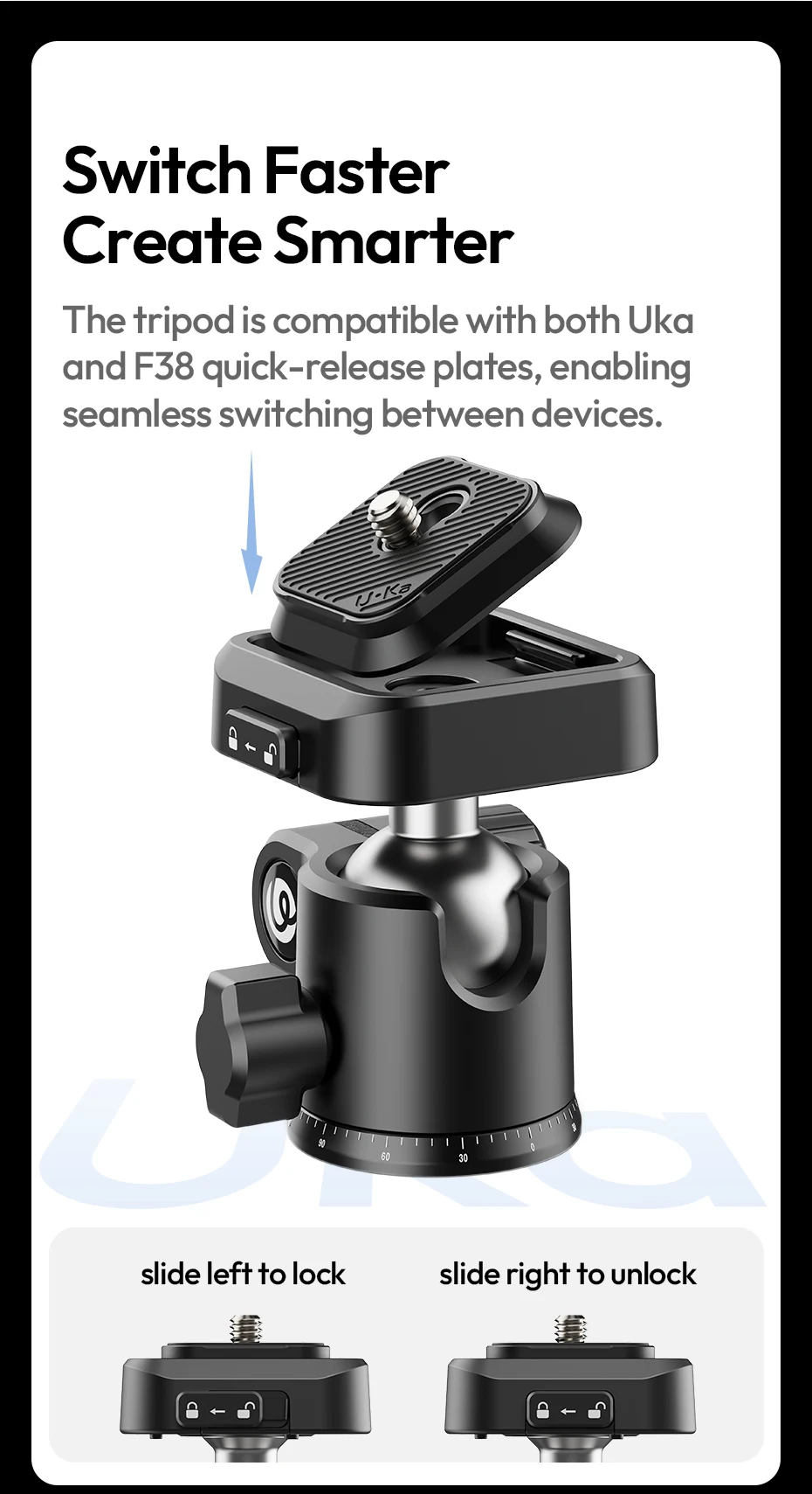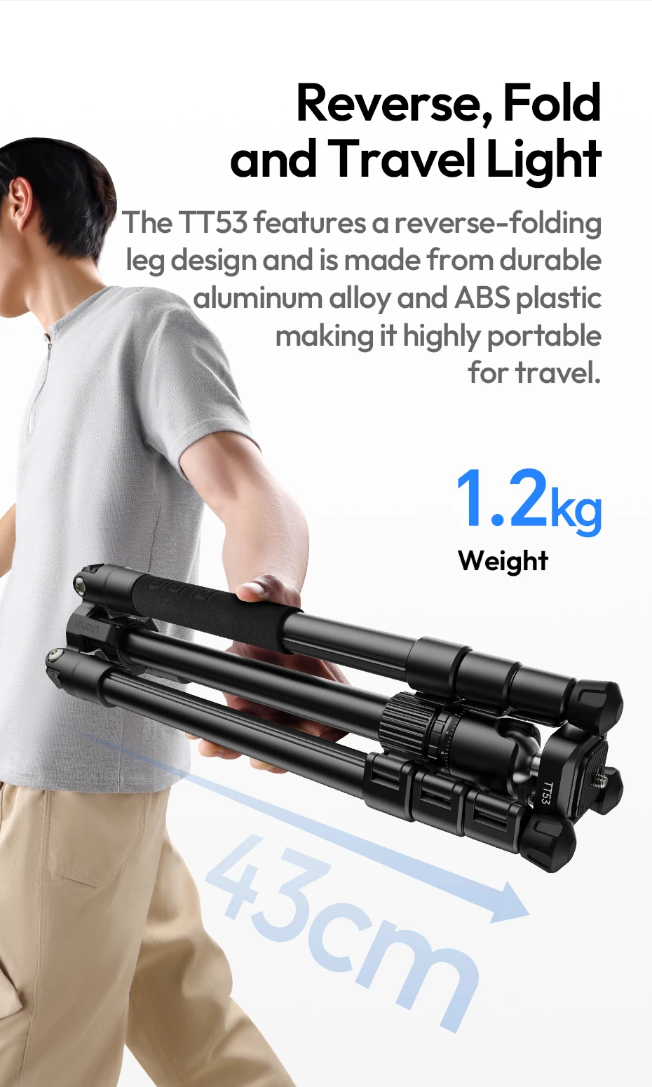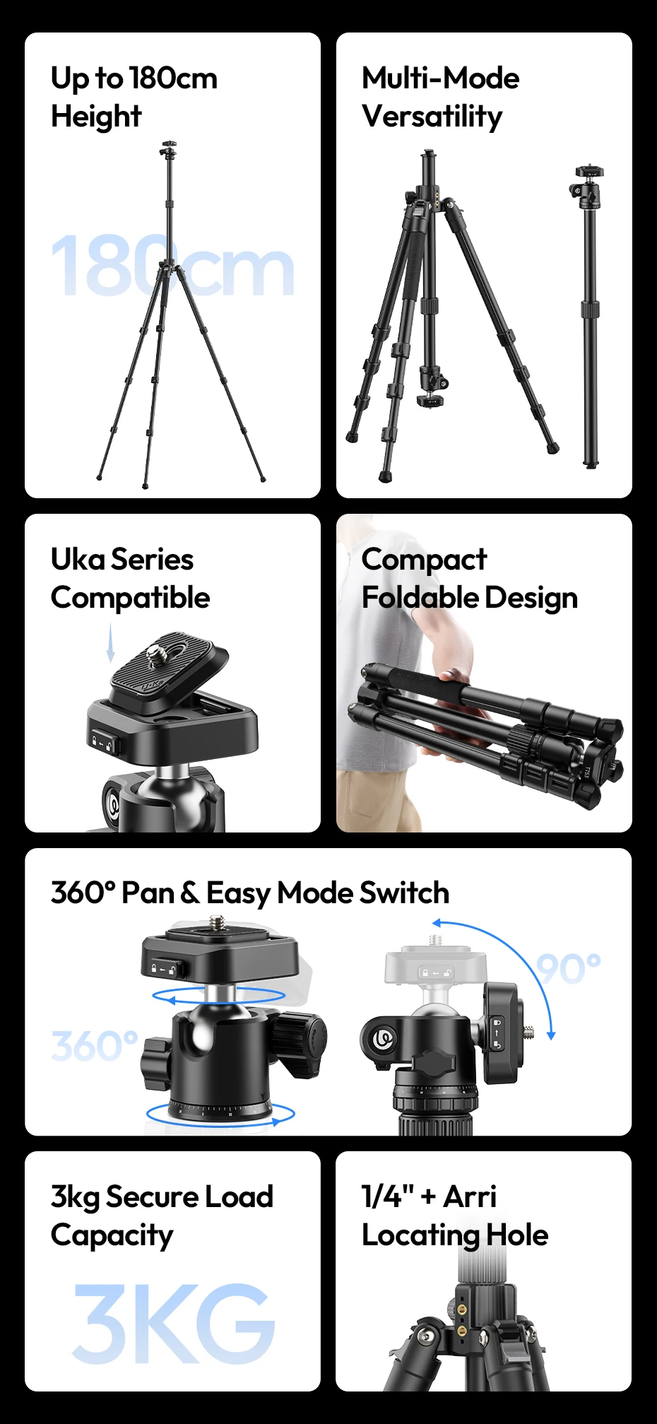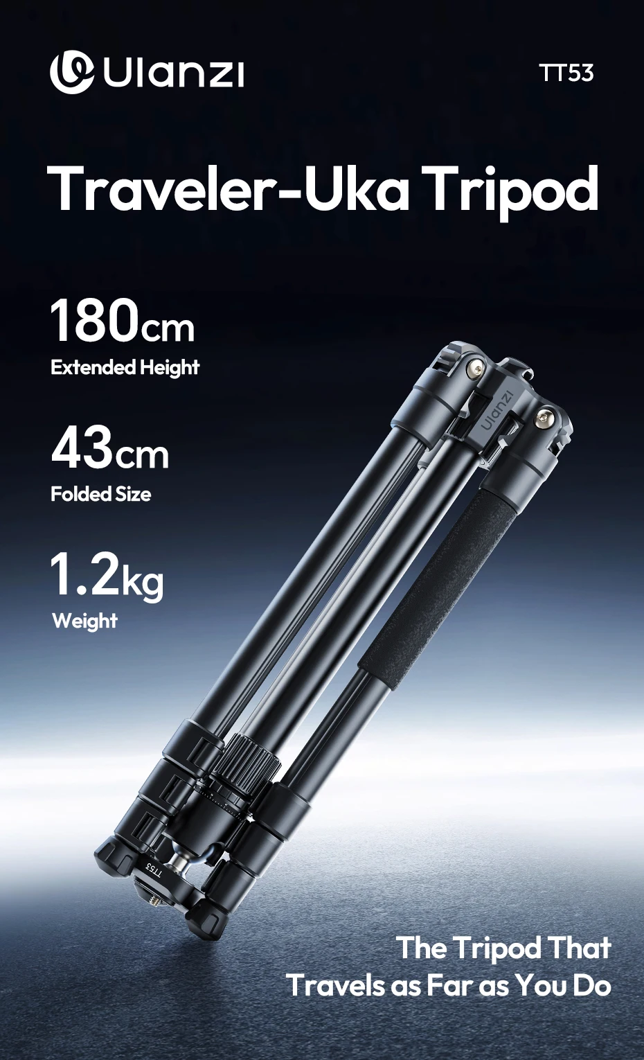 Ulanzi TT53 trípode Uka para viajero de 1,8 M, trípode ligero con cámara esférica UKA, DSLR, soporte de trípode plegable de 3KG