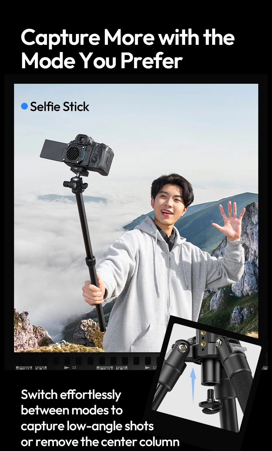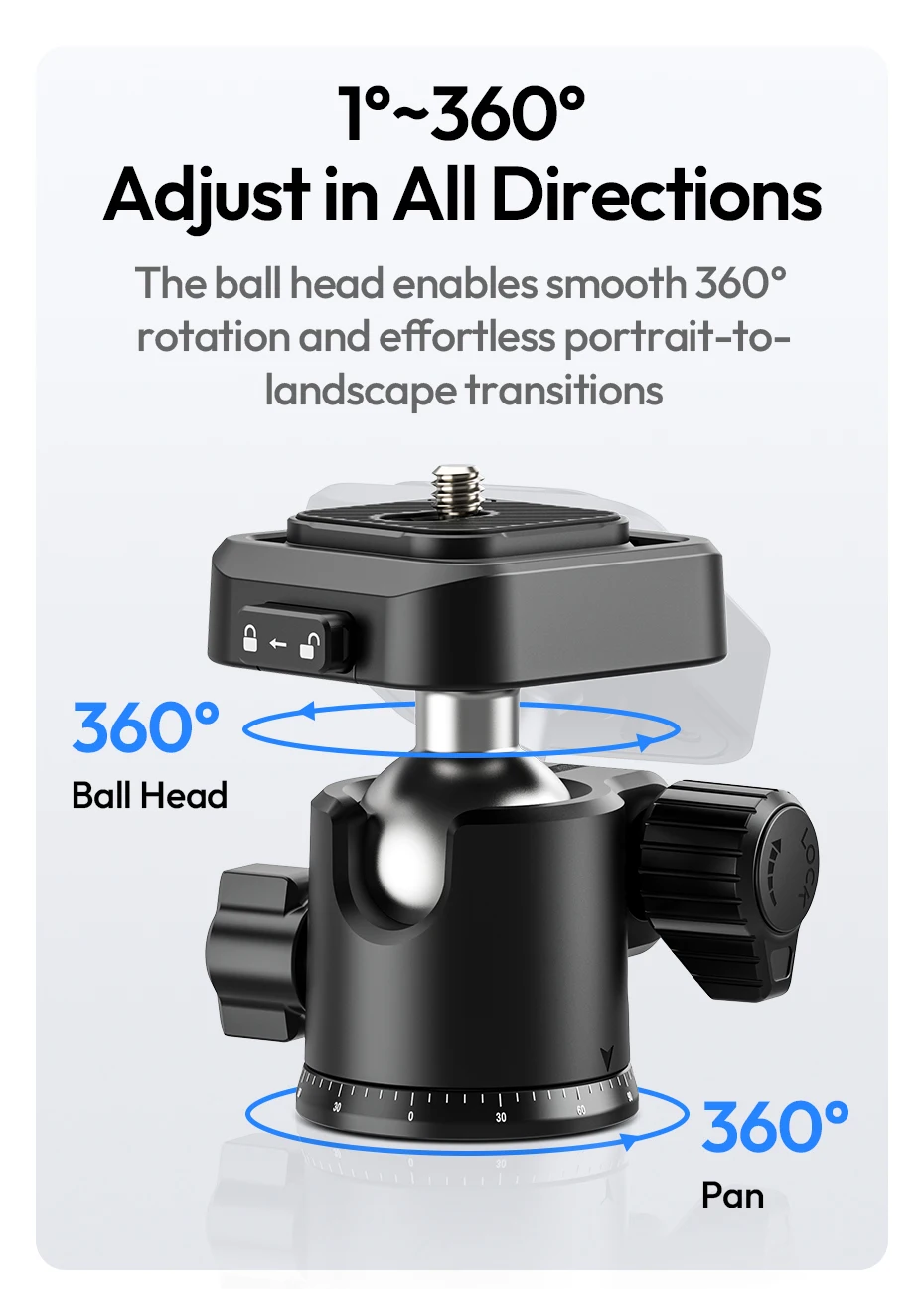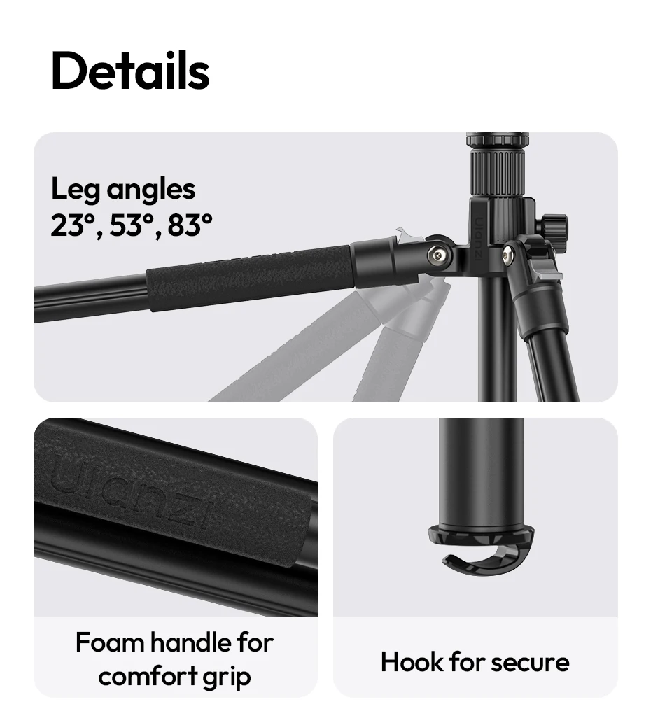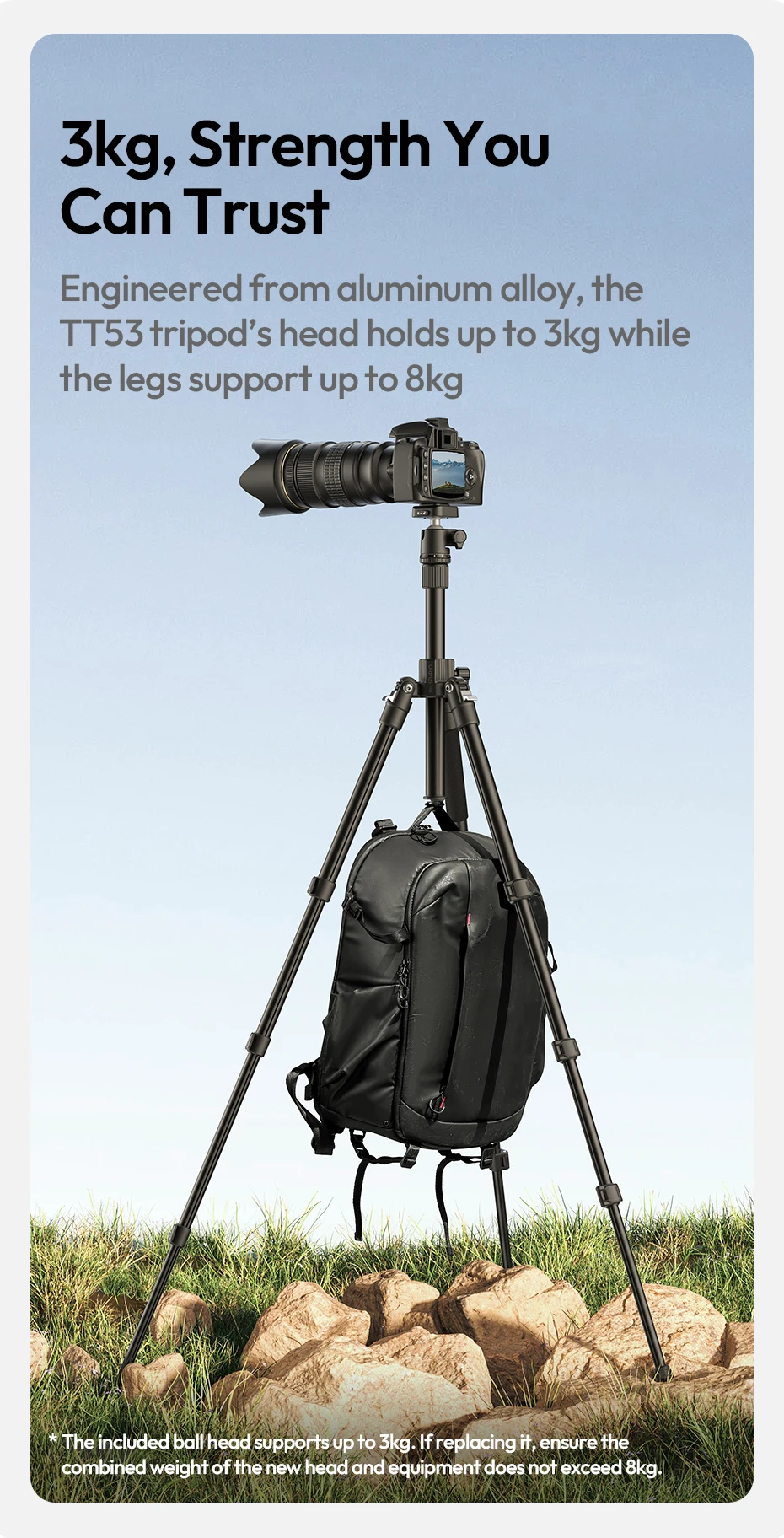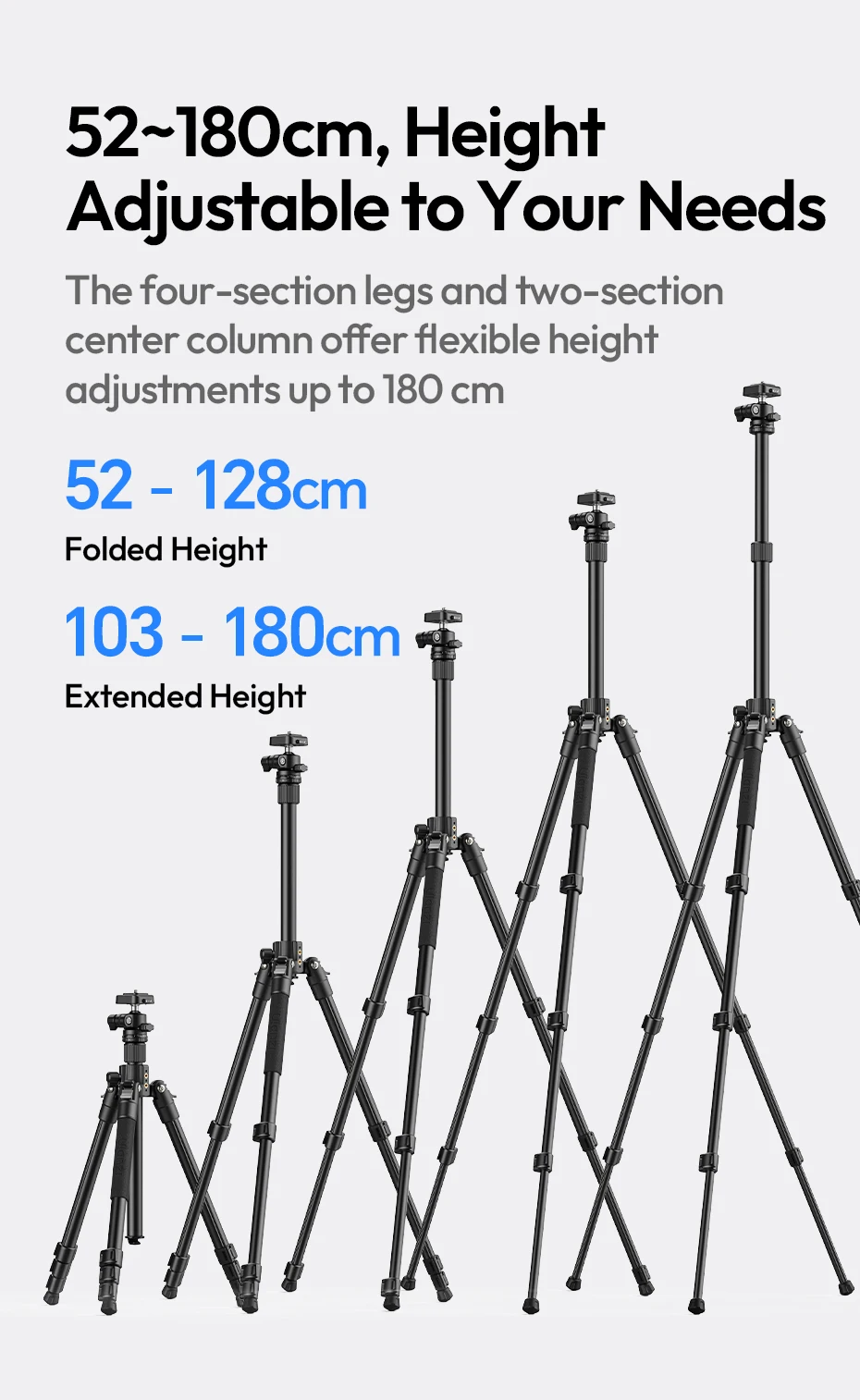 Ulanzi TT53 trípode Uka para viajero de 1,8 M, trípode ligero con cámara esférica UKA, DSLR, soporte de trípode plegable de 3KG