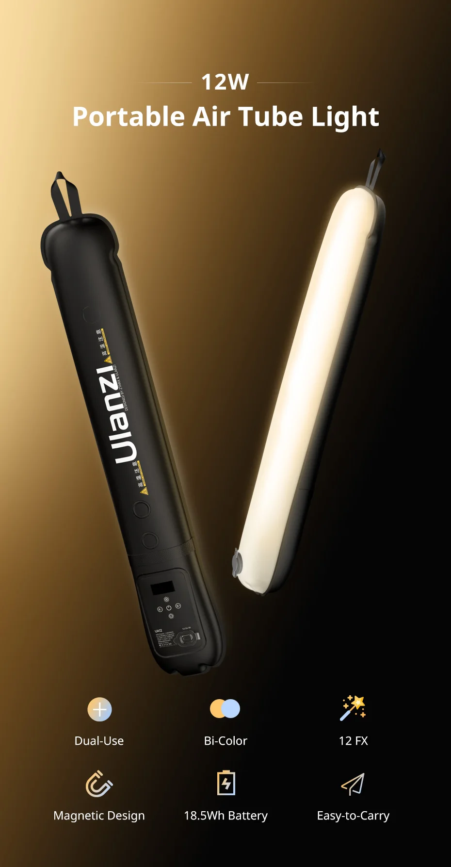 Ulanzi UA12 12W tubo de aire de TPU inflable luz 2700K-6500K bicolor portátil bolsillo palo de luz montaje magnético para fotografía en vivo