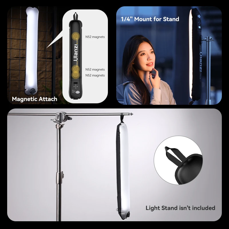 Ulanzi UA12 12W tubo de aire de TPU inflable luz 2700K-6500K bicolor portátil bolsillo palo de luz montaje magnético para fotografía en vivo