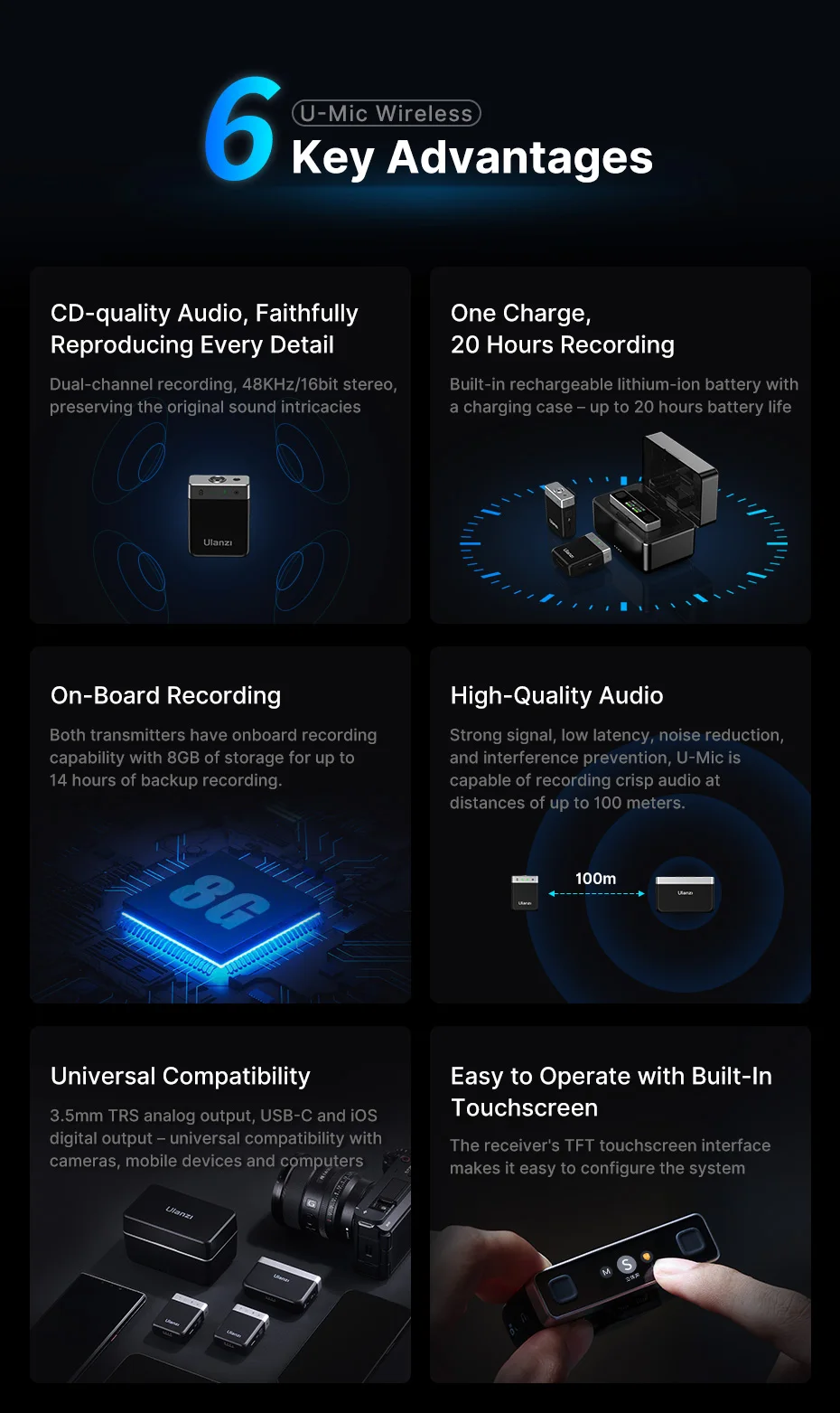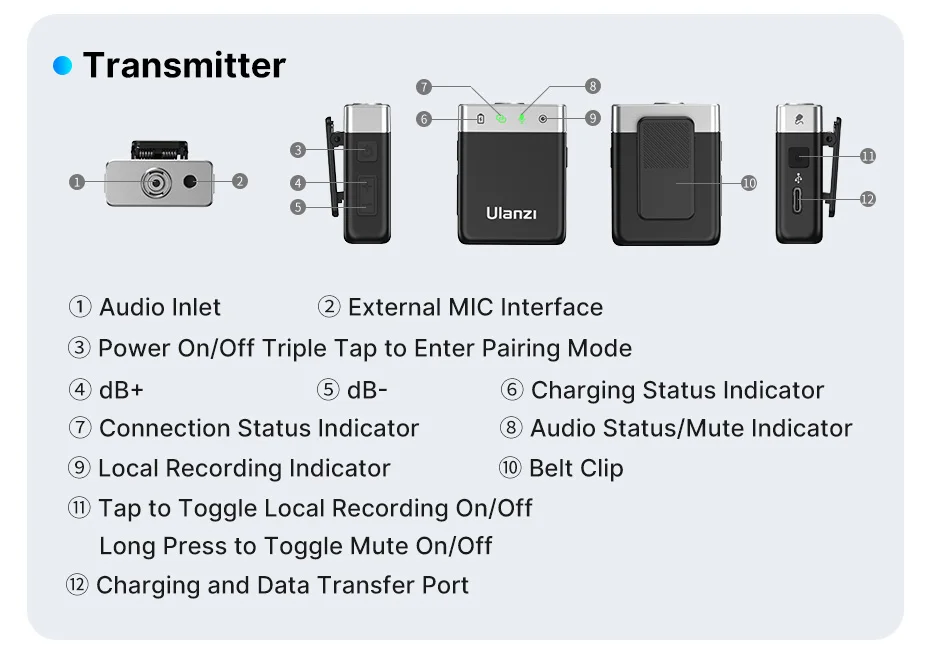 Conectividad inalámbrica: Ulanzi™ Tecnología 2 TX en 1 RX Combo