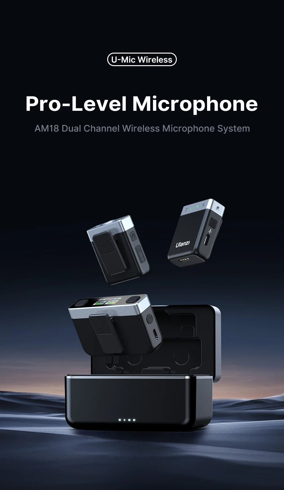 Ulanzi U-mic inalámbrico Pro-Level micrófono AM18 sistema de micrófono inalámbrico de doble canal