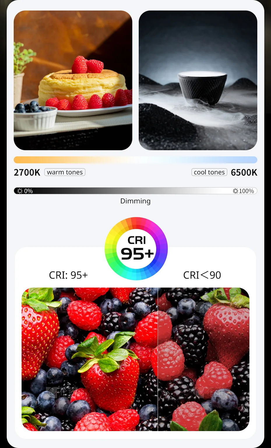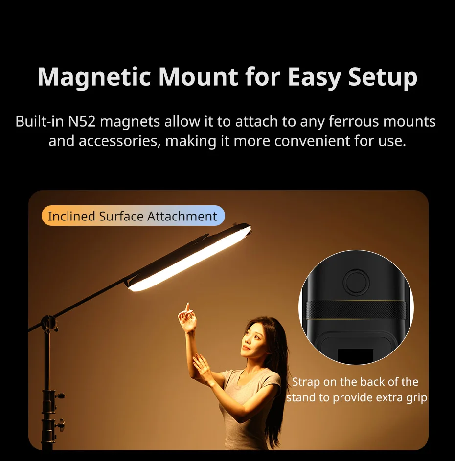 bueno, luz móvil. El tono cálido y frío es ajustable, así como el brillo. Incluye bolsa de almacenamiento, cargador, imán para montaje y luz.