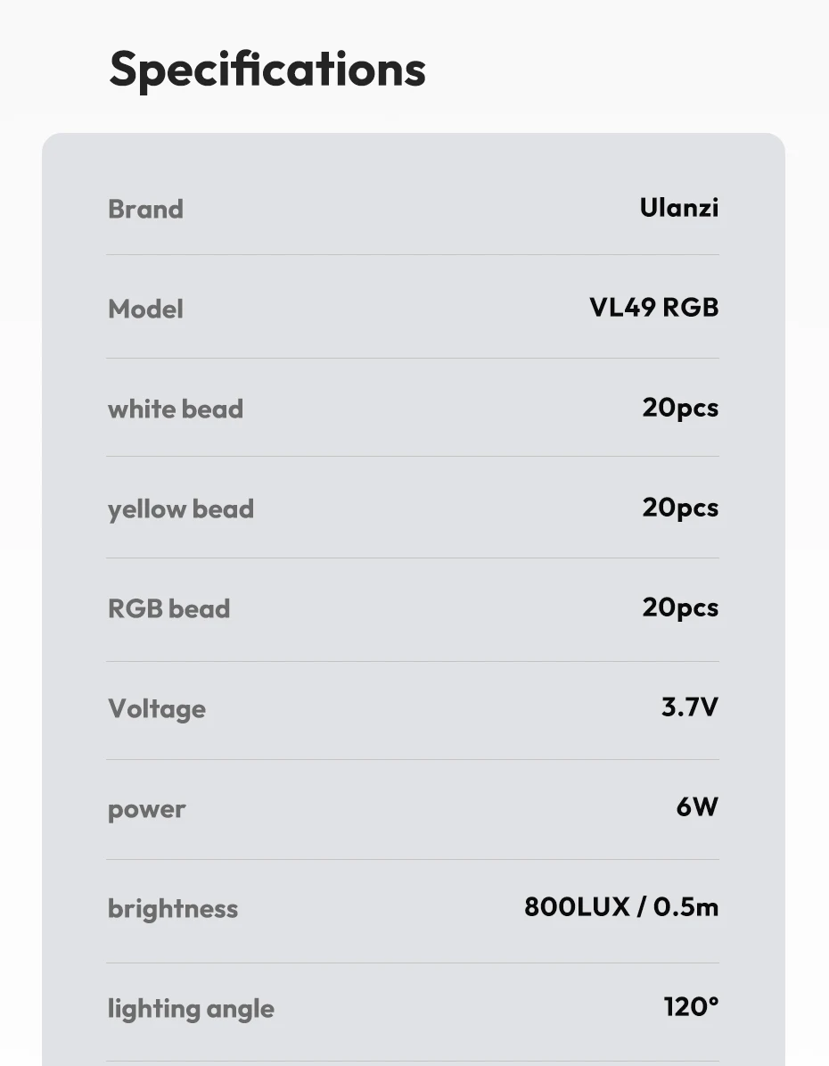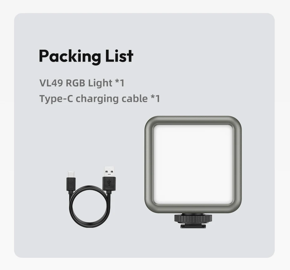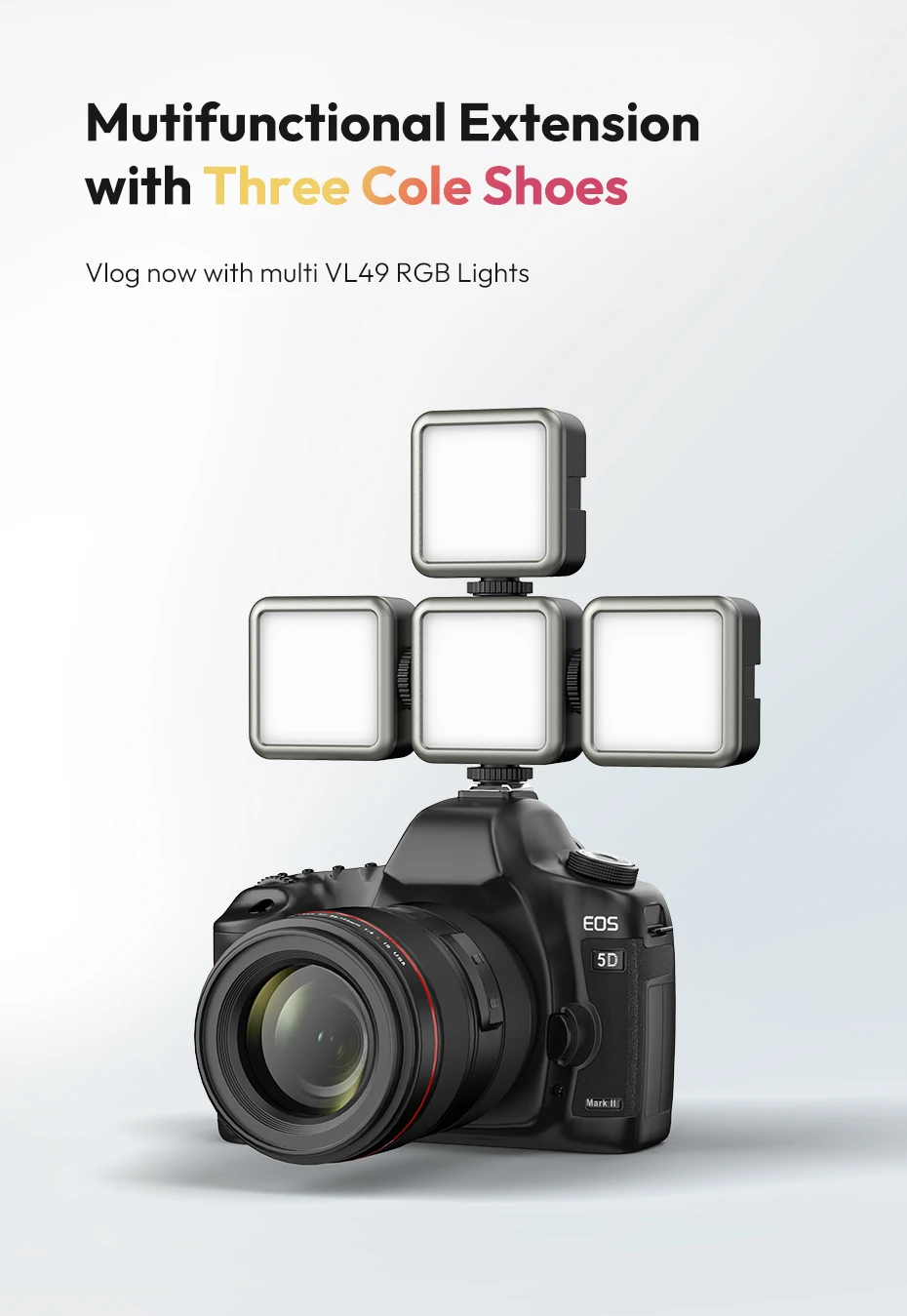 Ulanzi VL49 Mini RGB LED Luz de vídeo 2700K-9000K en la cámara Luz de relleno Fotografía Iluminación Bolsillo Live Tiktok Vlog Lámpara de luz