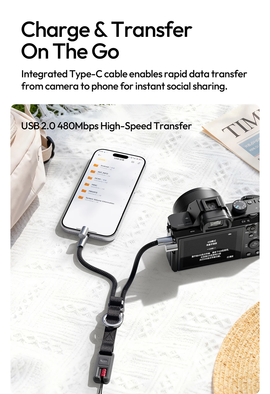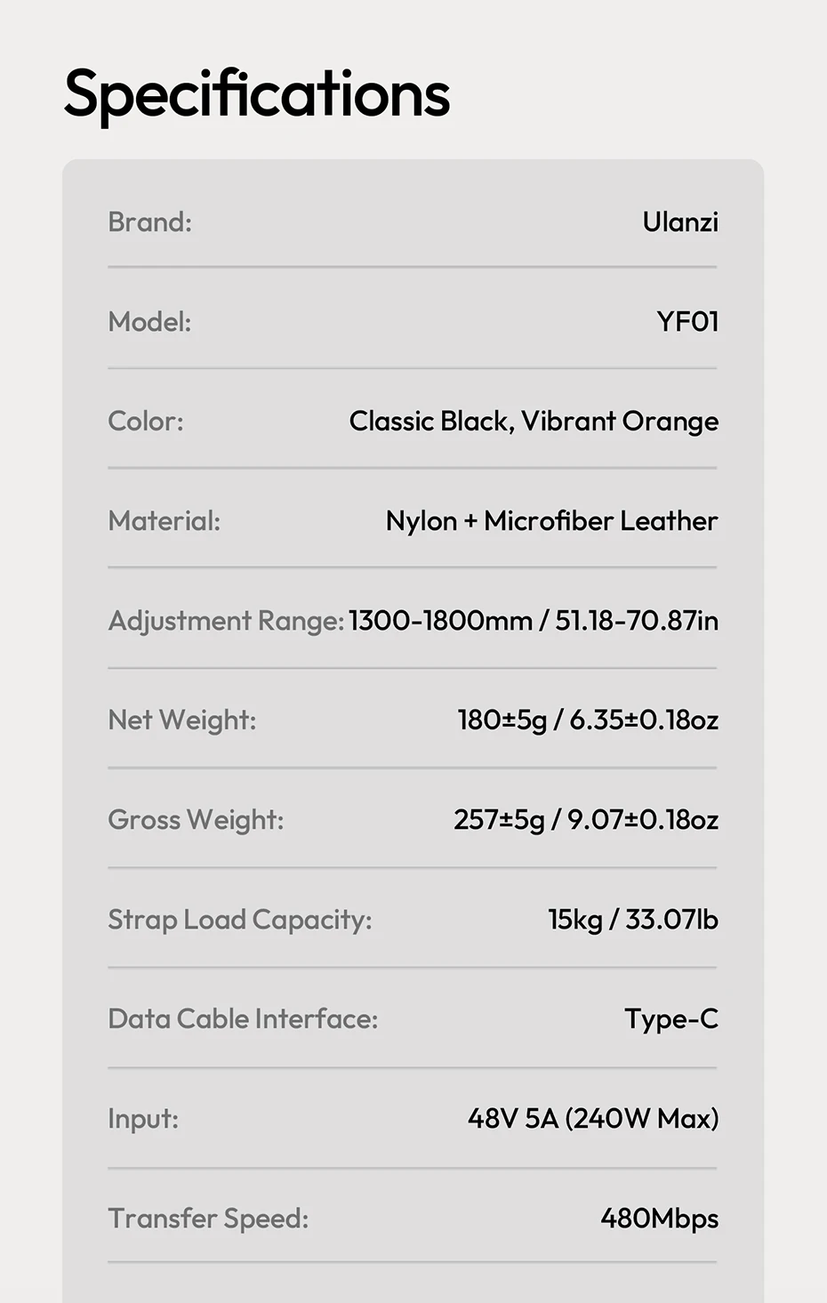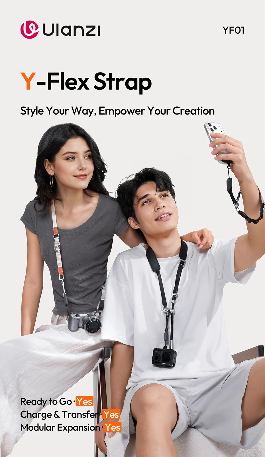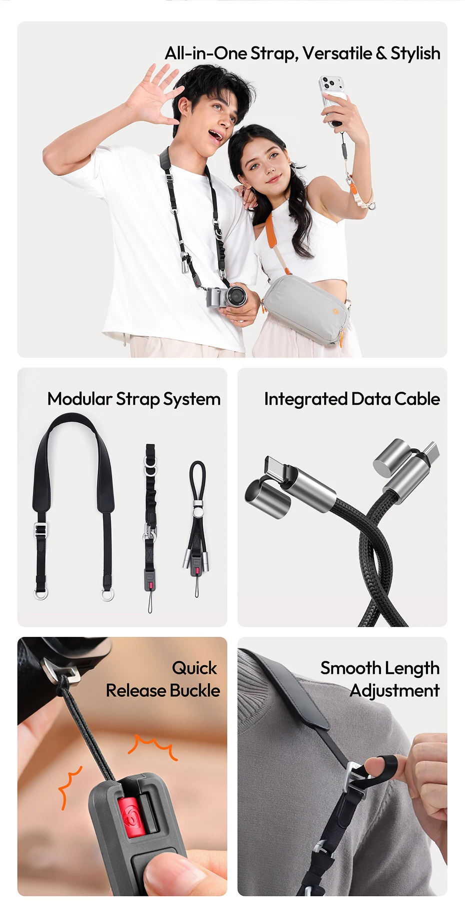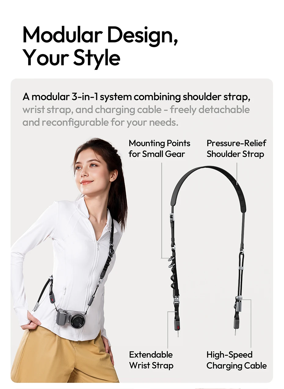 Ulanzi YF01 Correa Y-Flex para cámara/teléfono Correa para el hombro con cable de transferencia de datos tipo C para fotografía al aire libre