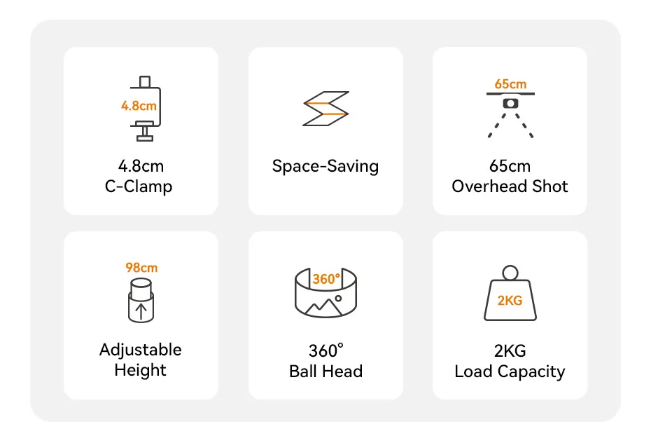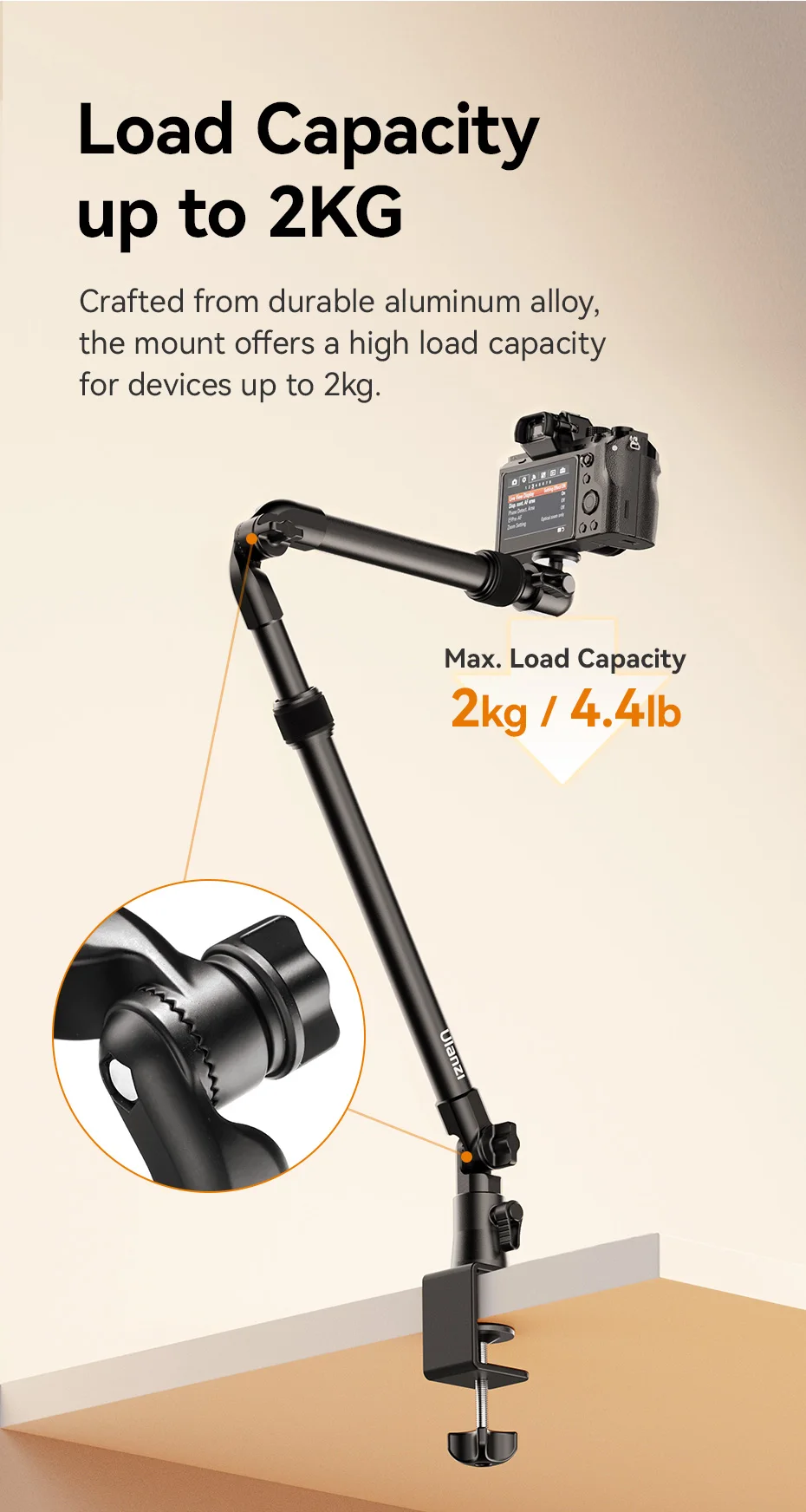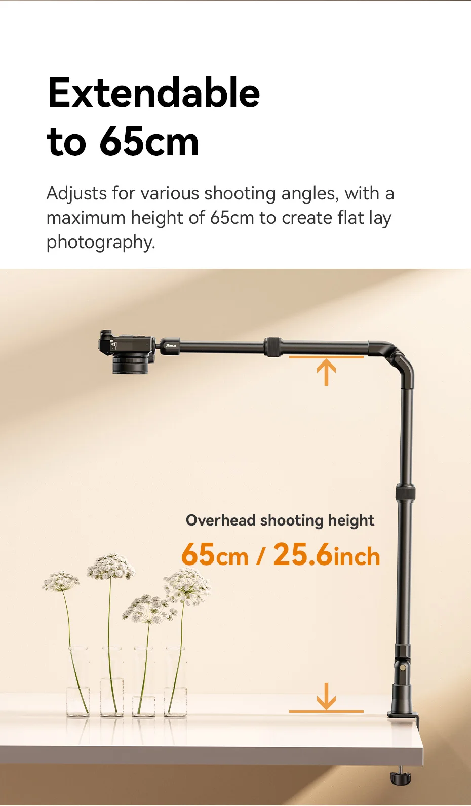 Ulanzi ZJ02 soporte de brazo Flexible para cámara soporte de escritorio brazo extensible para cámara DSLR transmisión en vivo fotografía de naturaleza muerta
