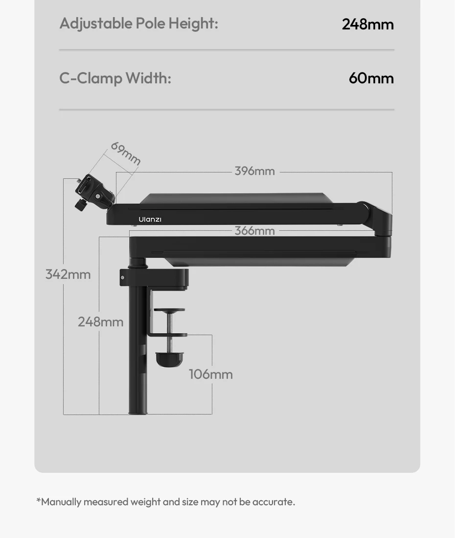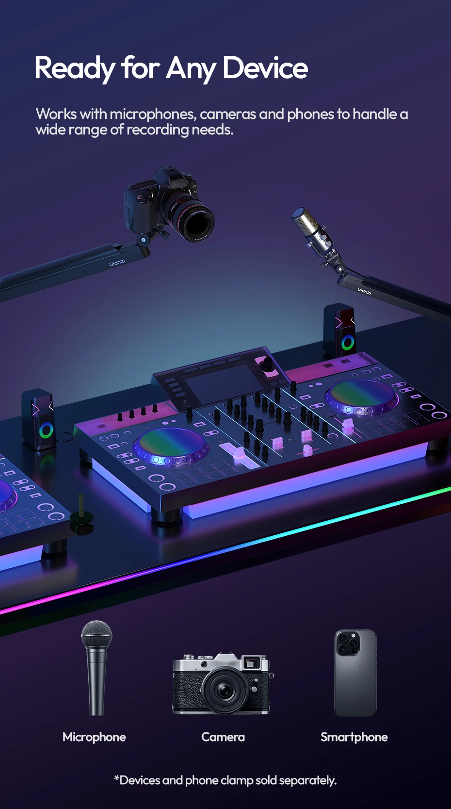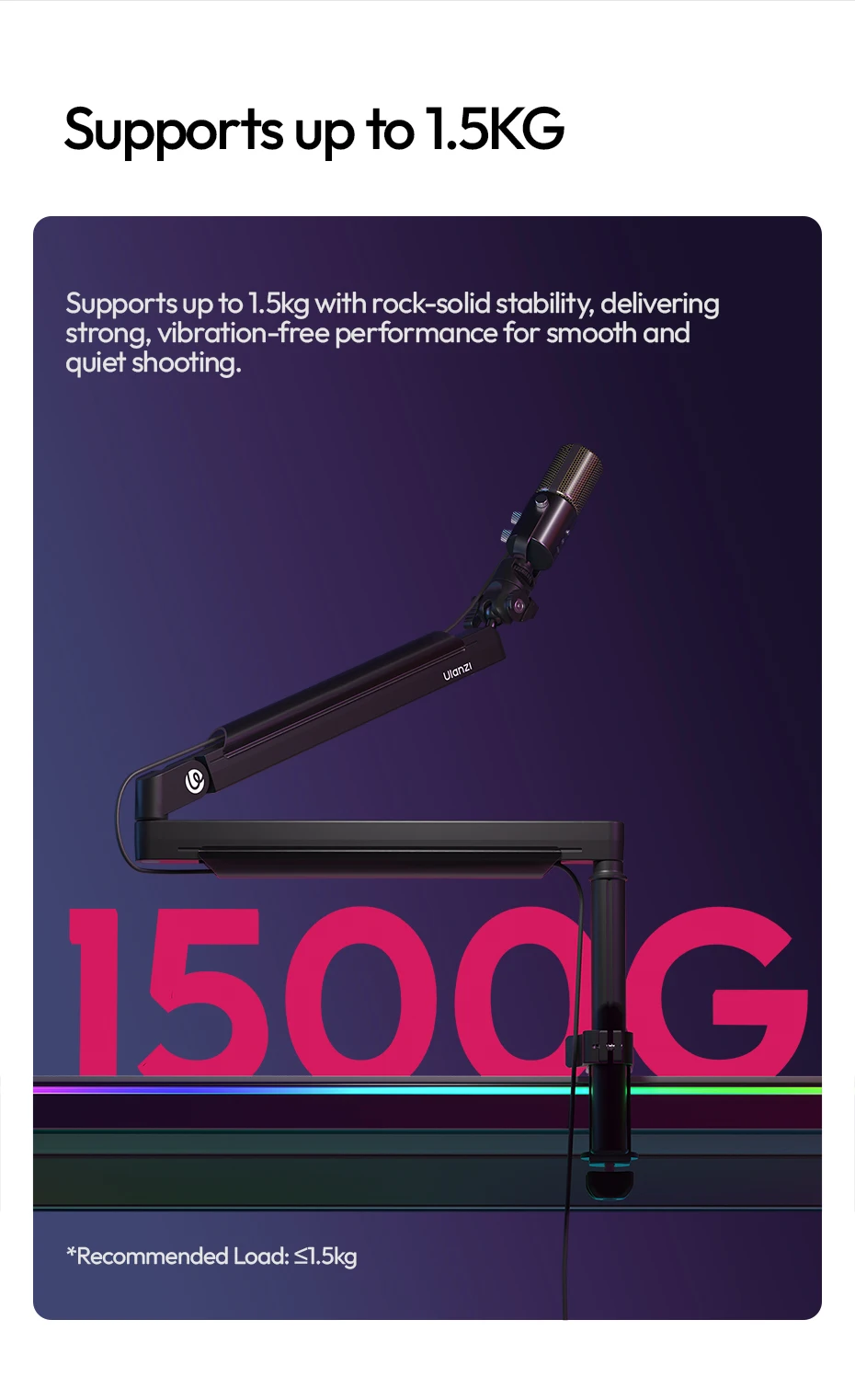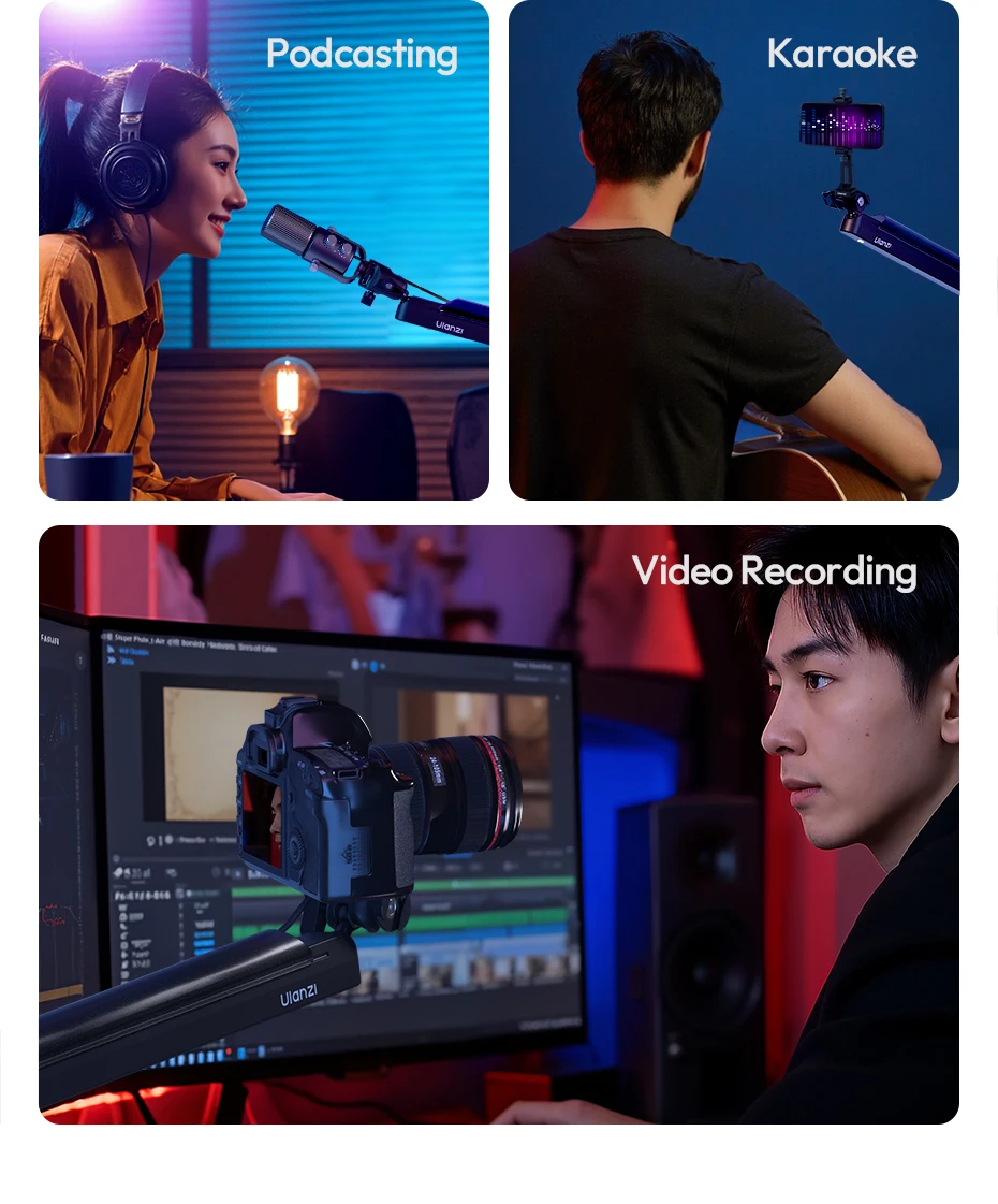 Ulanzi ZJ05 Brazo de brazo de micrófono ajustable con 360 ° Bola de carga de 1,5 kg para fotografía de Vlog en vivo con micrófono/cámara/teléfono