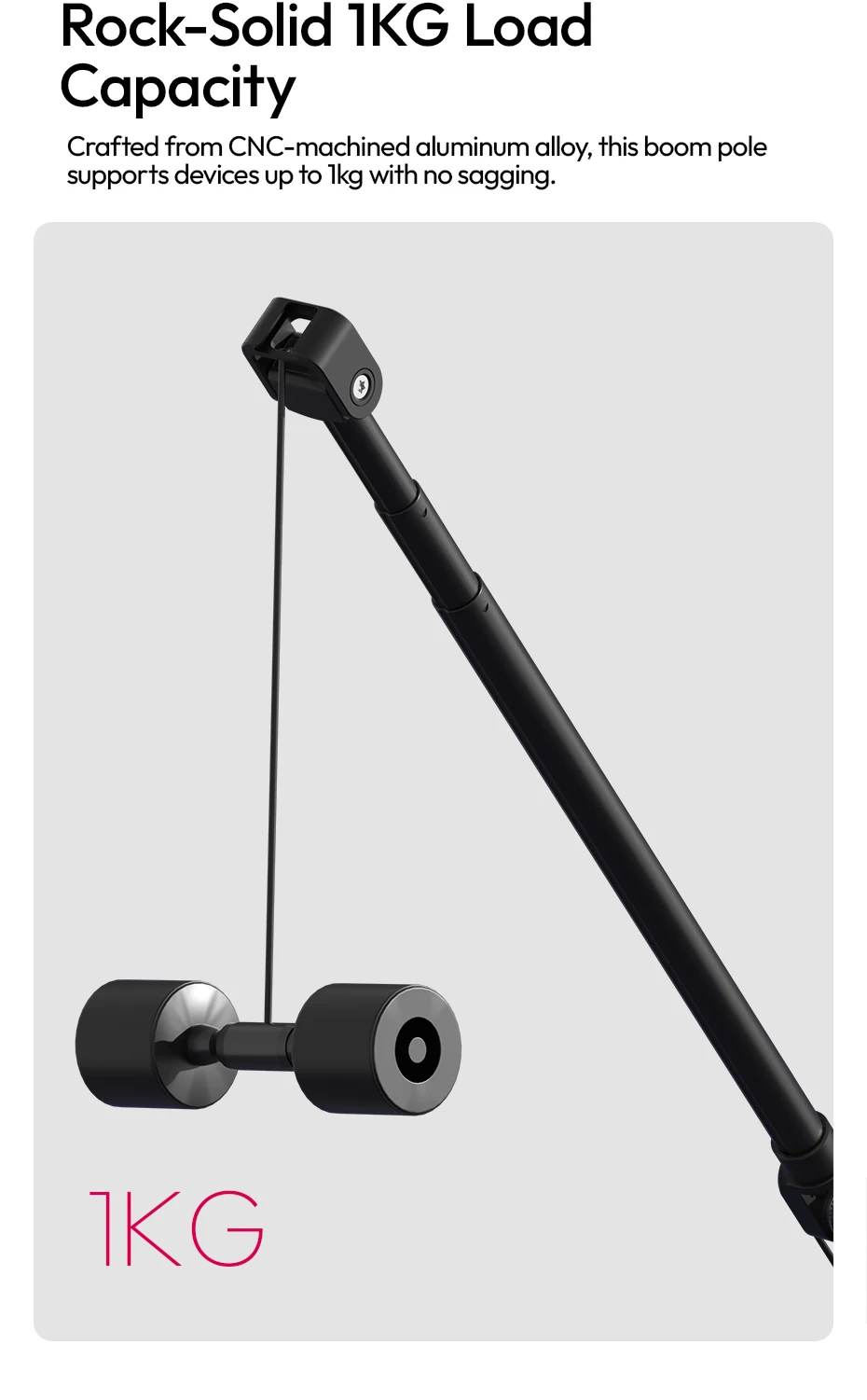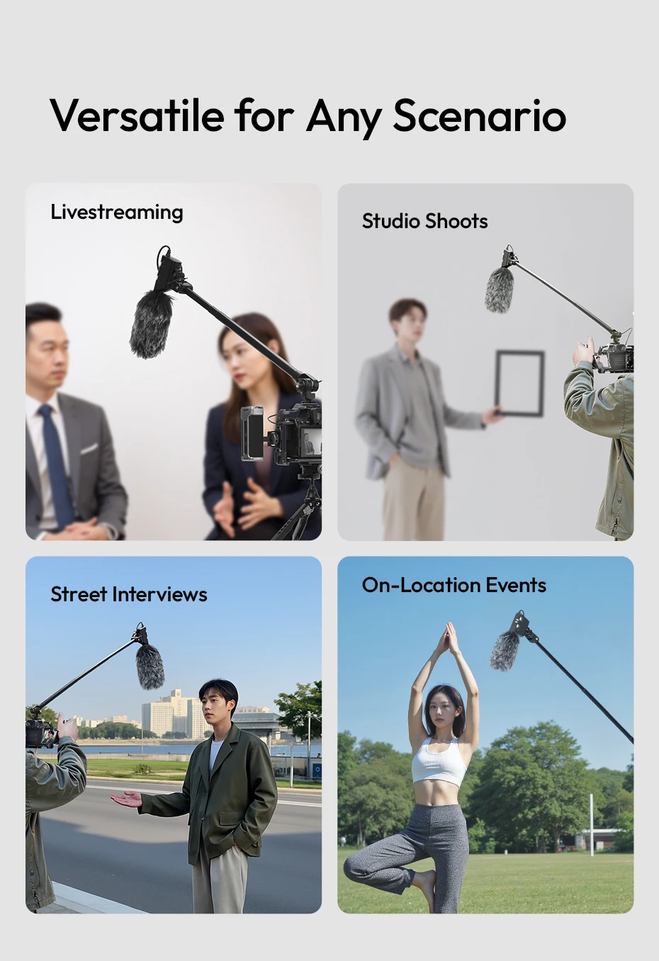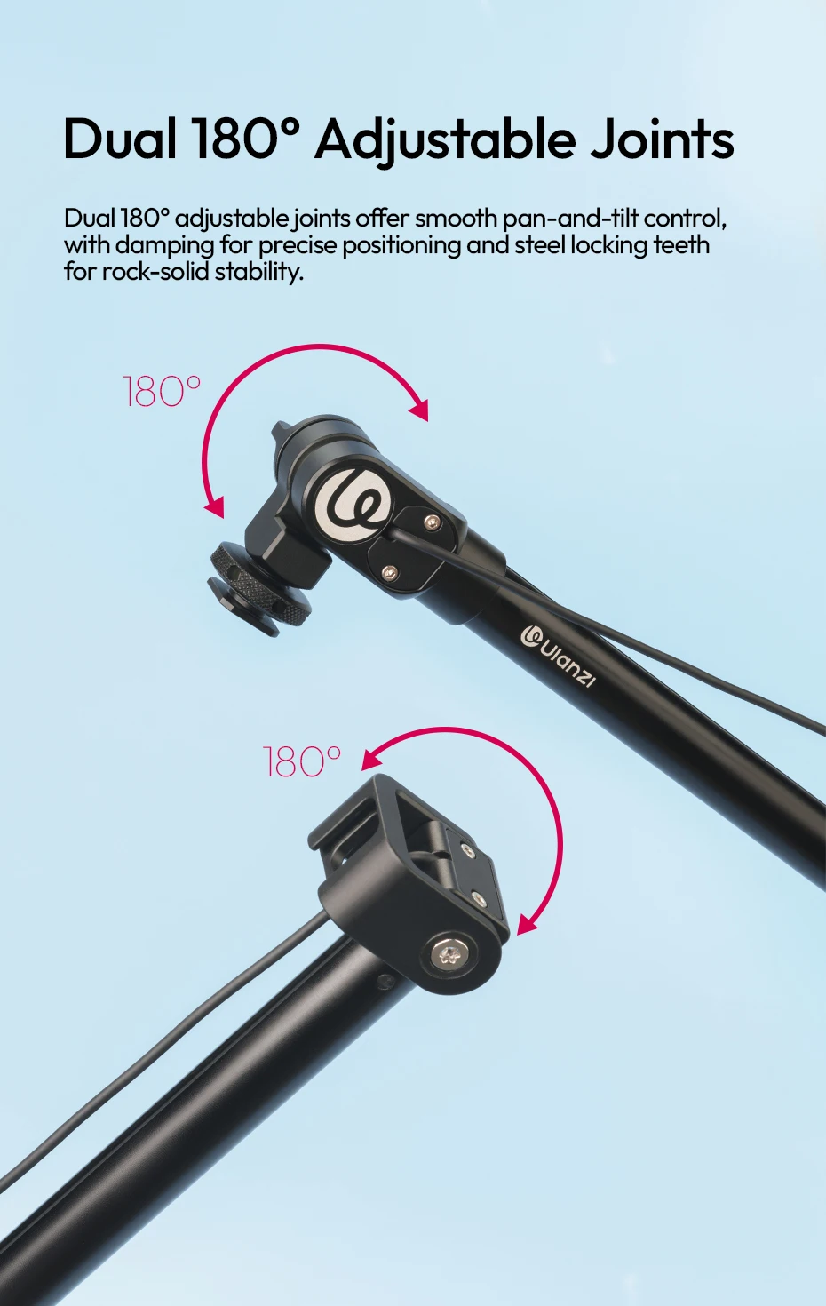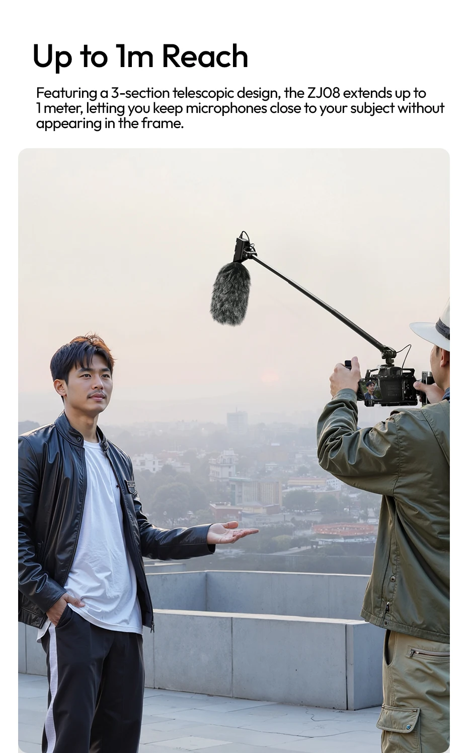 Ulanzi ZJ08 Brazo de poste de micrófono con doble 180 ° Ajuste para videocámara DSLR, teléfono, entrevistas callejeros, eventos en ubicación, viajes al aire libre
