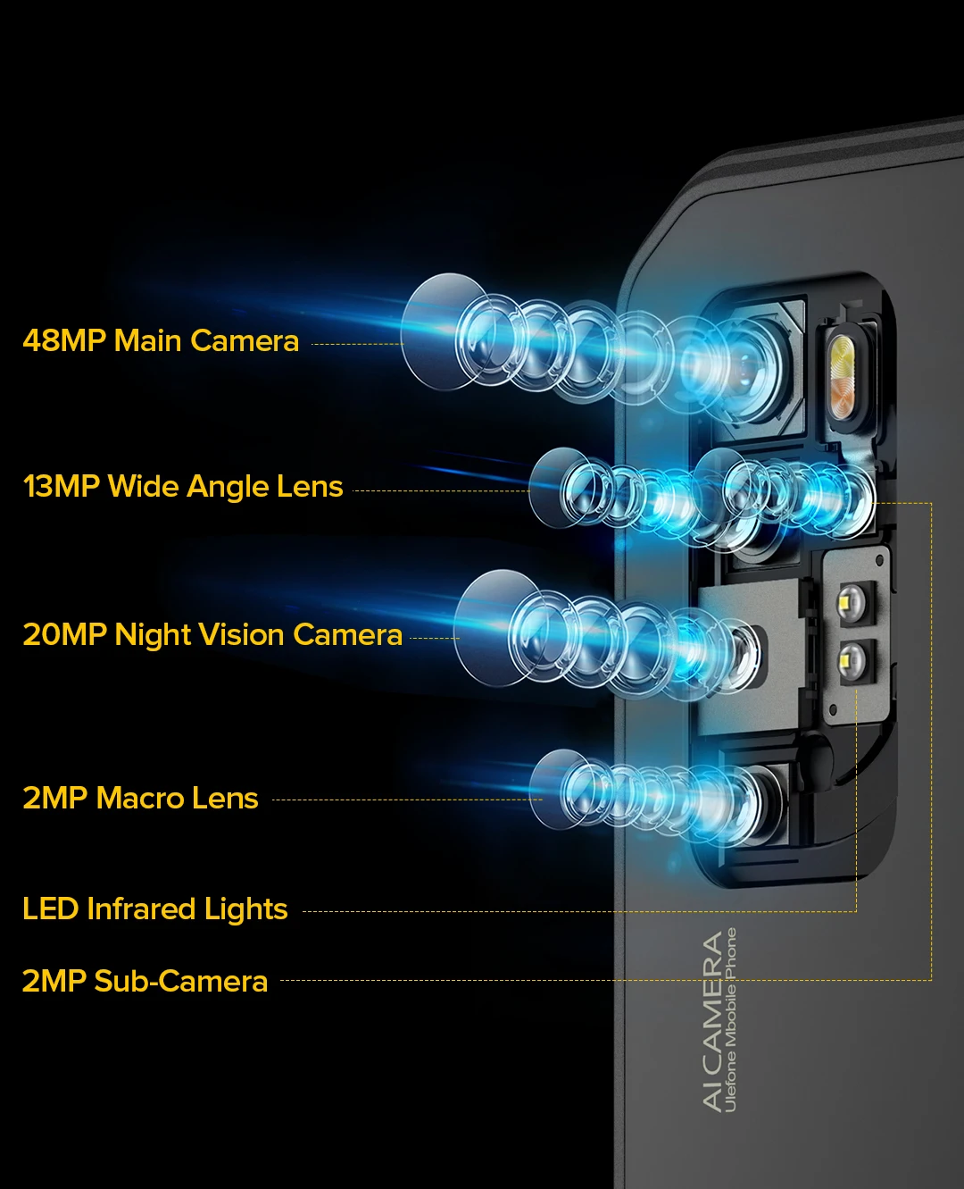 48MP(F1.79)+13MP(F2.4)+20MP(F1.8)+2MP(F2.4)+2MP