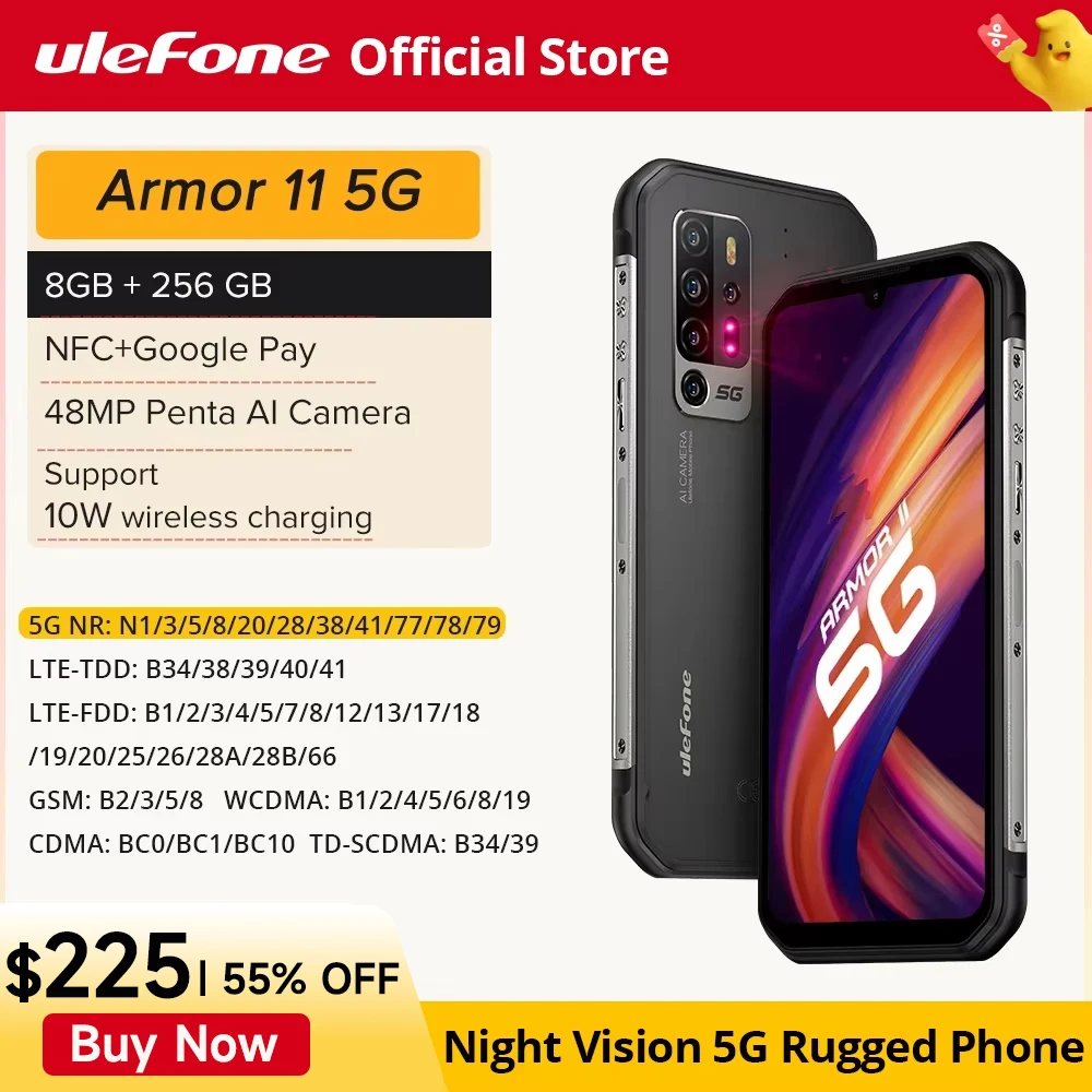 Comprar Ulefone Armor 11 5G teléfono móvil resistente Android 8GB + 256GB Android teléfono inteligente impermeable 48MP NFC teléfono móvil carga inalámbrica