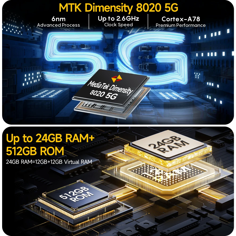 Up to 24GB RAM+512GB ROM (24GB RAM=12GB RAM + 12GB Virtual RAM)