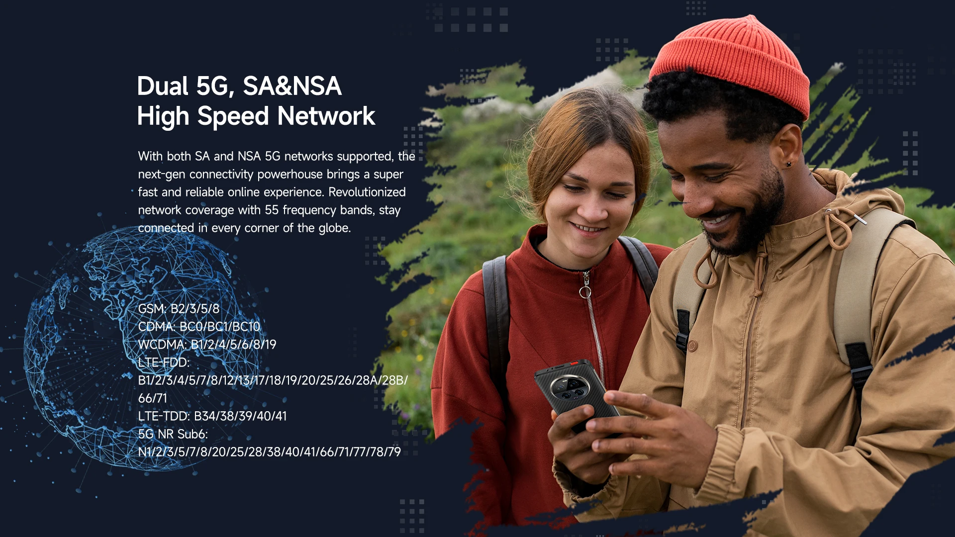 *Some network carriers have not been displayed because their 5G networks are not yet in mass commercial use. If you have participated in this carrier's testing program, please check with the carrier about the 5G frequencies they use, so that you can check whether Armor 23 Ultra 5G supports their network.