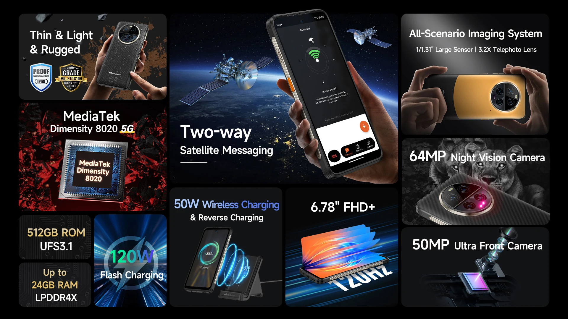 Comprar Ulefone Armor 23 Ultra 5G teléfono resistente mensaje por satélite 120W Smartphone 64MP cámara nocturna 24GB + 512GB NFC Android 13 teléfono móvil
