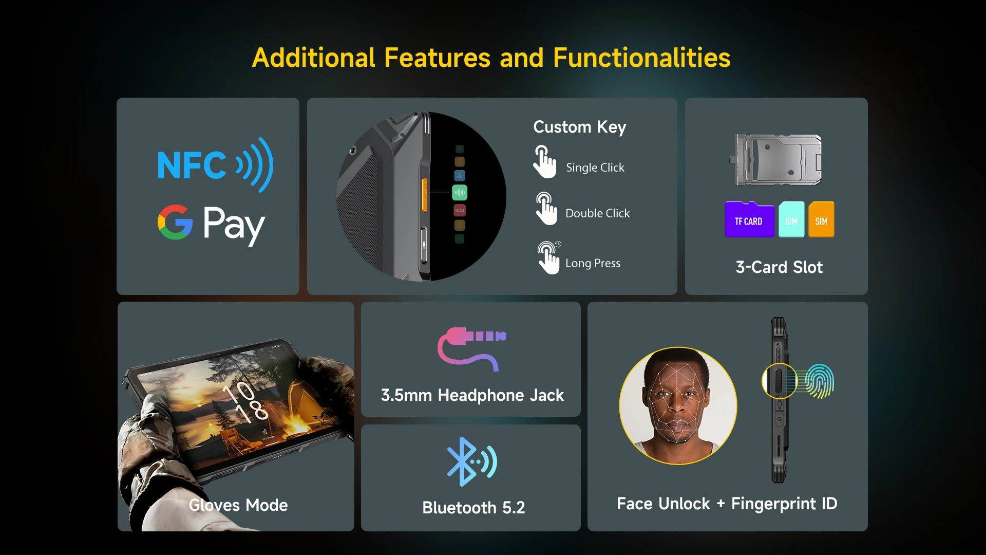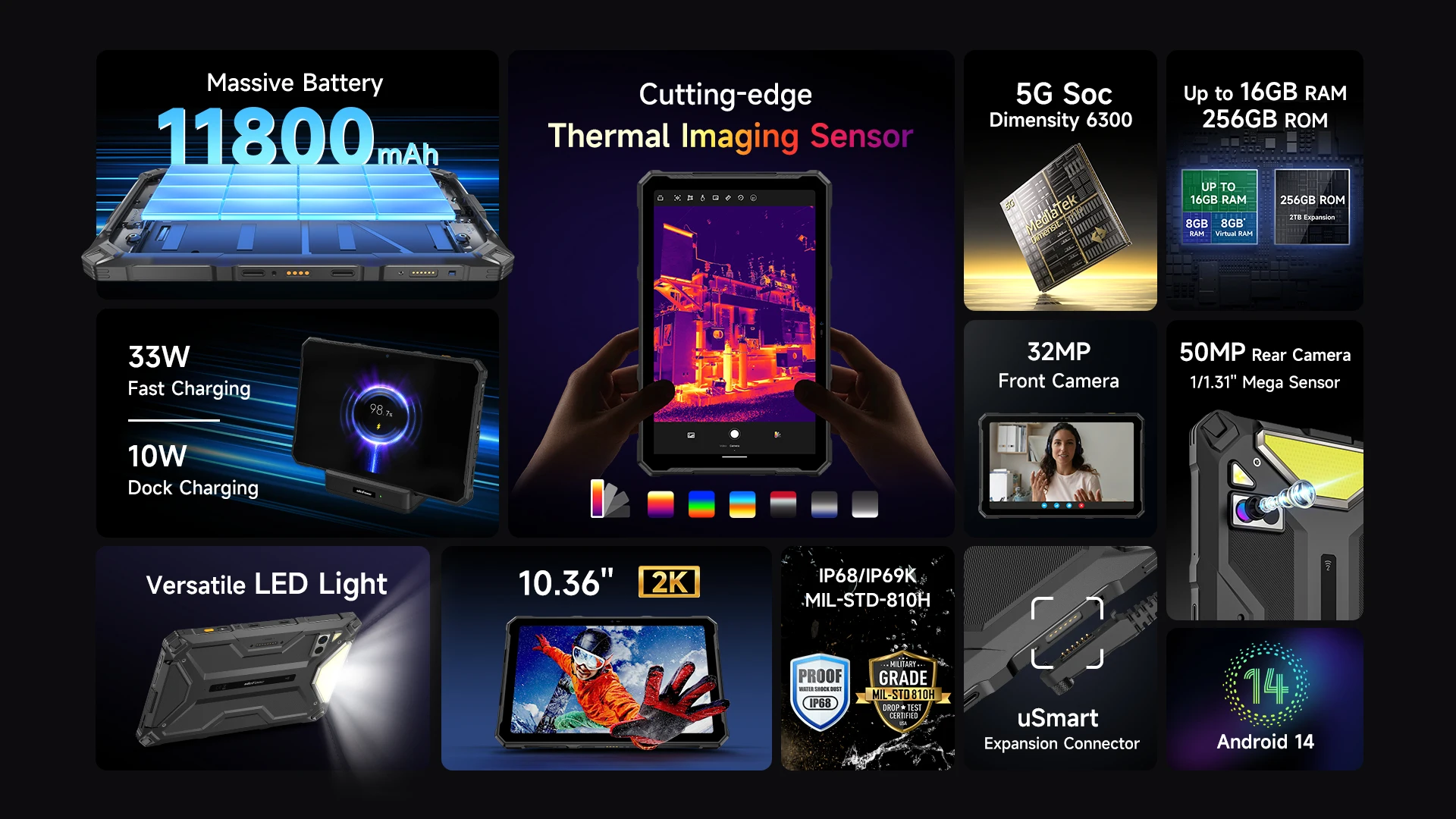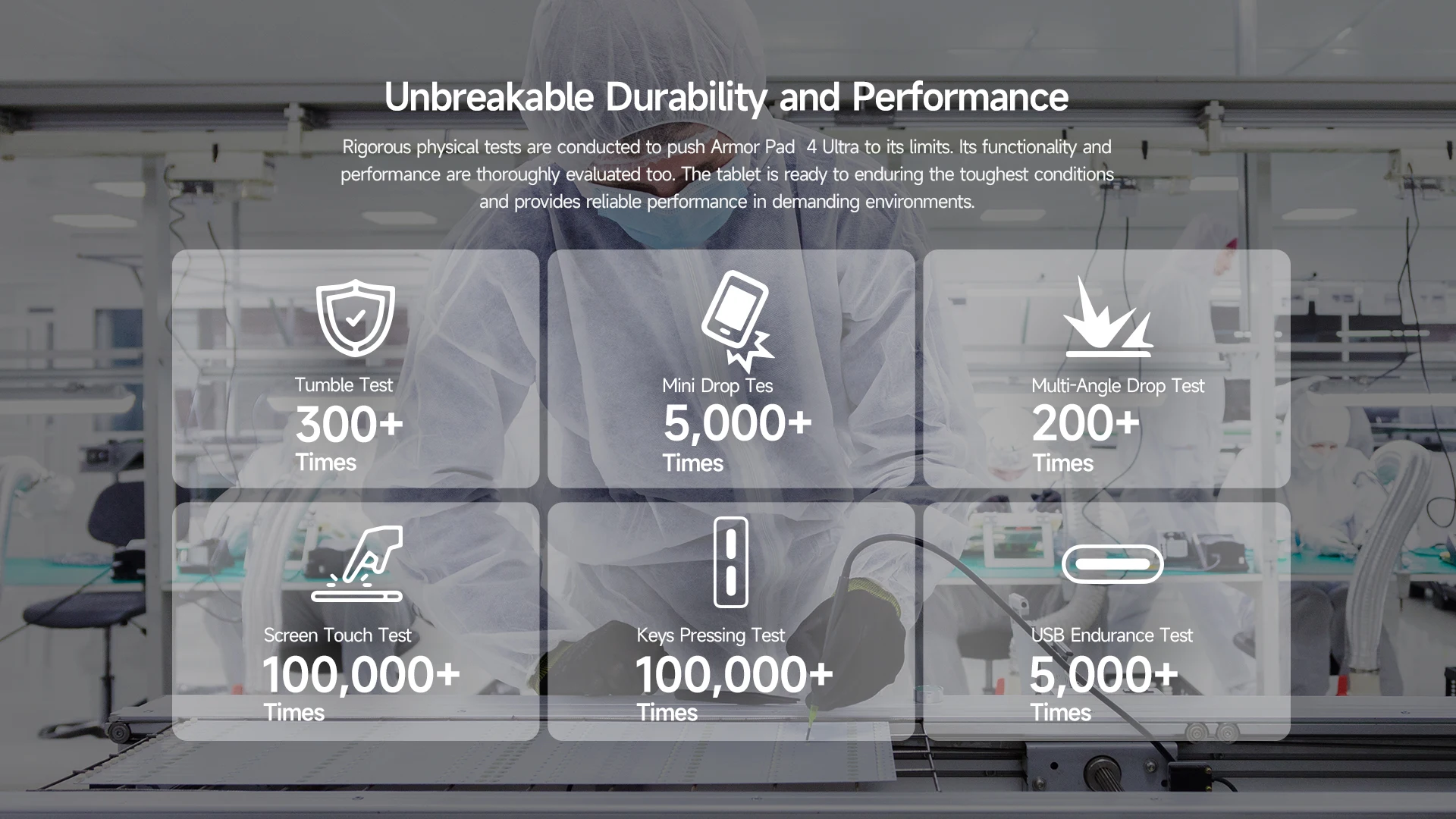 Armor Pad 4 UItra cuenta con una enorme batería de 11800 mAh, que le permite trabajar y disfrutar de entretenimiento durante horas sin la molestia de buscar constantemente un cargador. Además, la nueva batería sólida rompe el frío con un rendimiento rellenable incluso en temperaturas heladas hasta -30°C