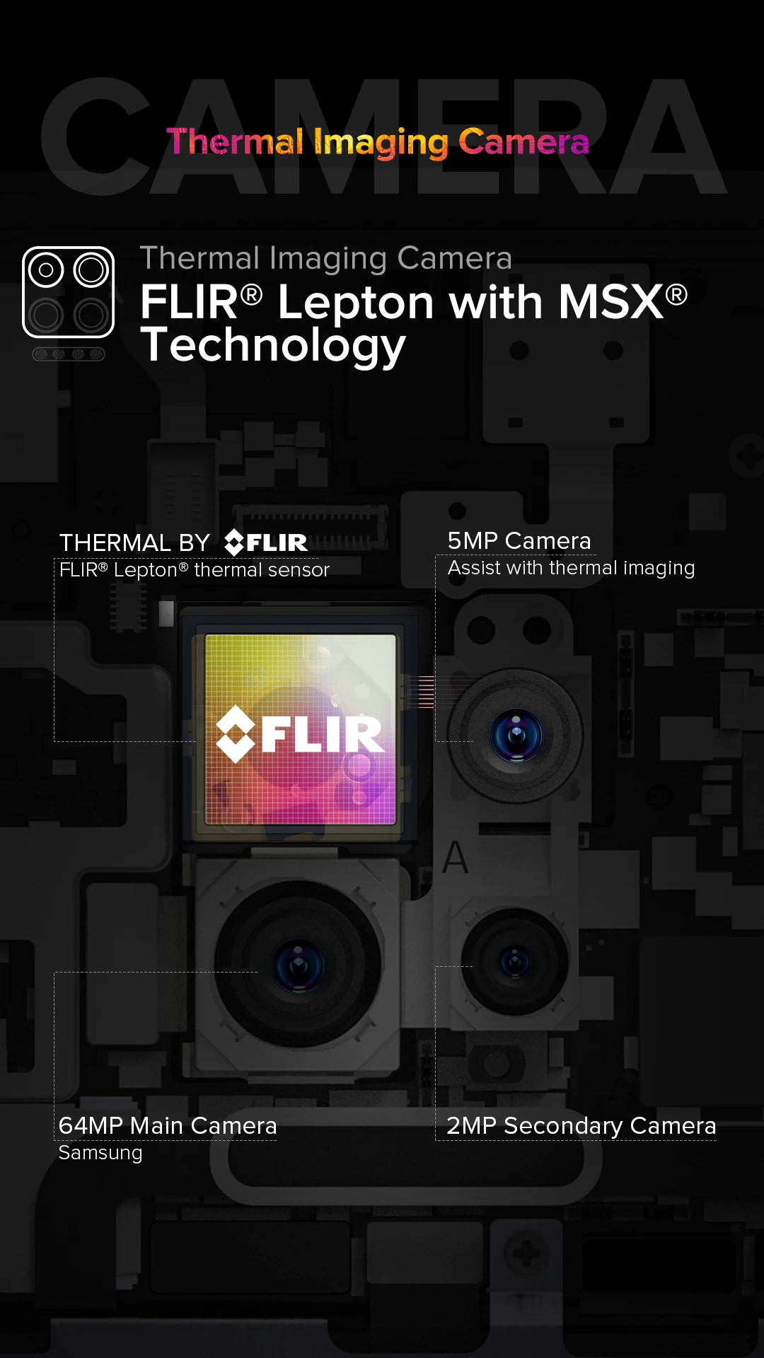 64MP + 5MP (cámara secundaria para la función de imagen térmica FLIR) + 2MP
