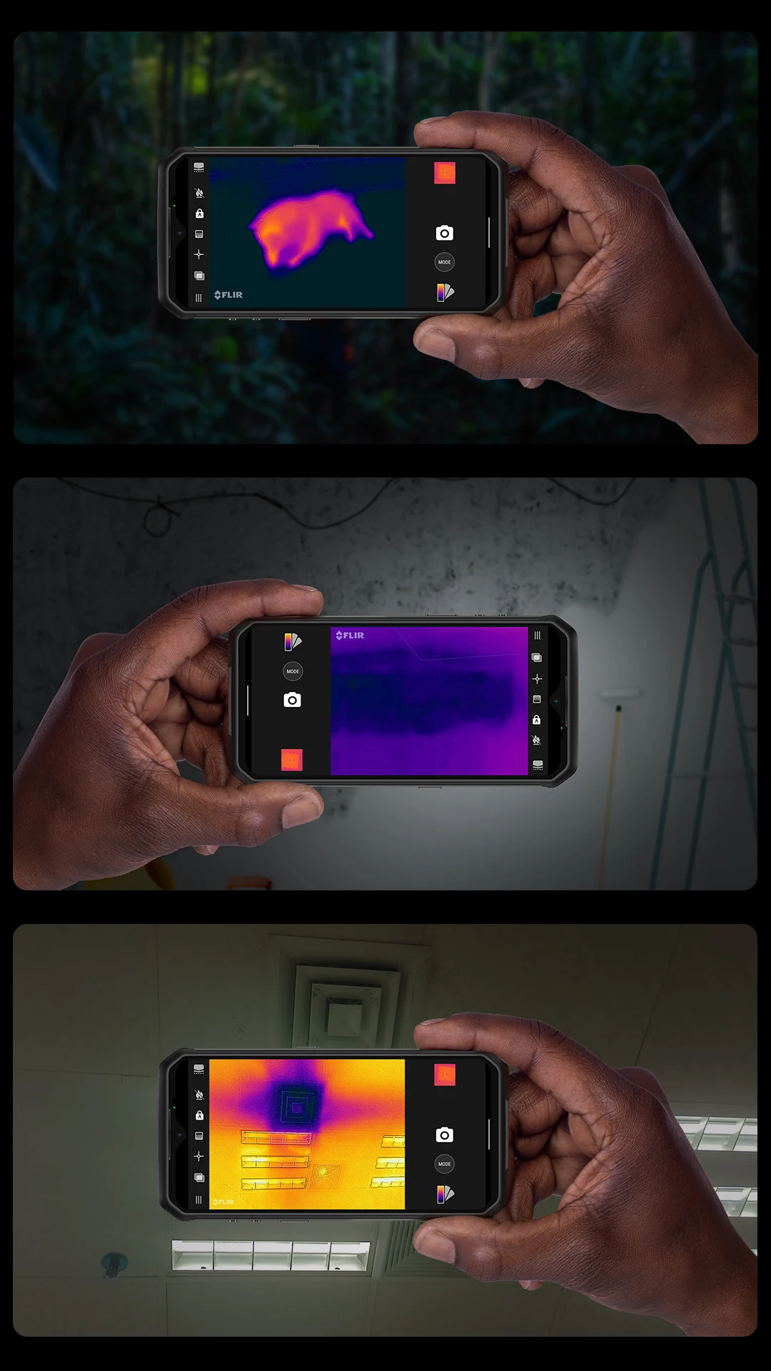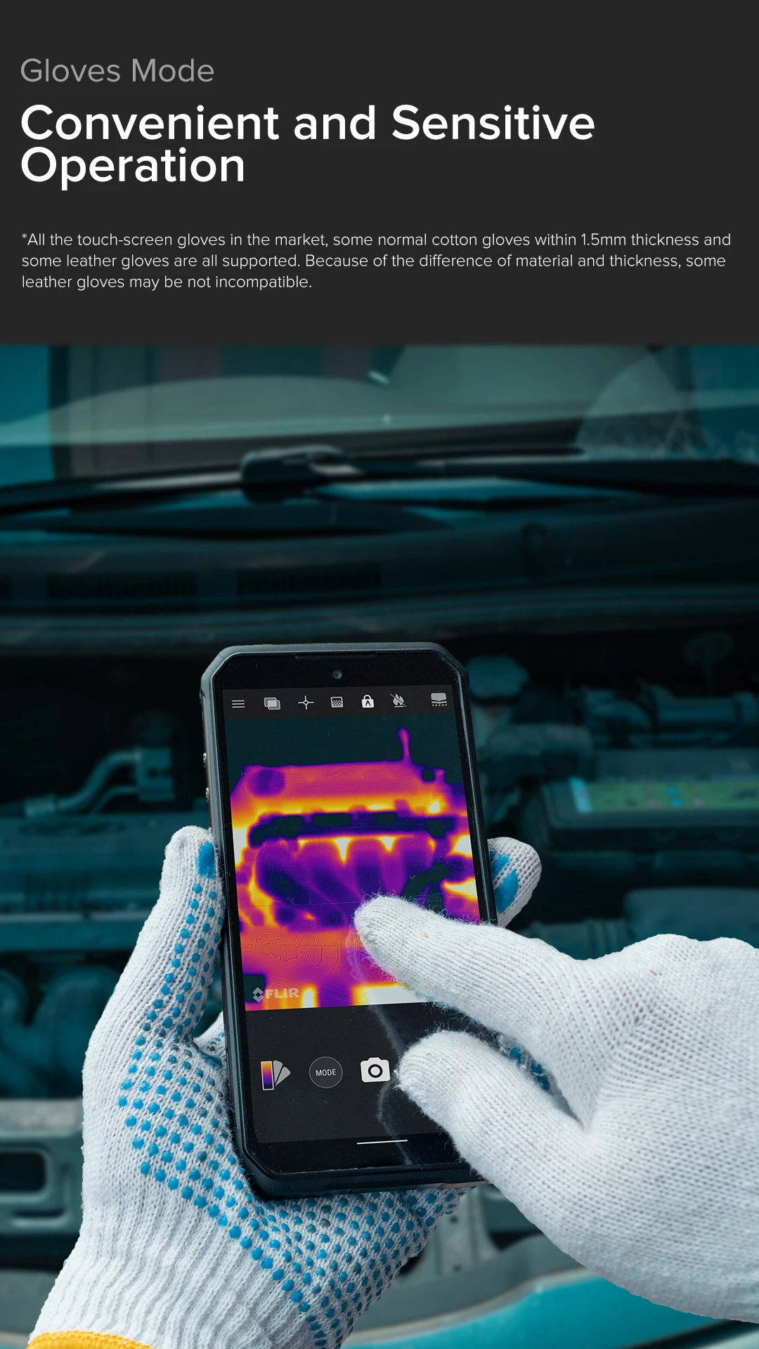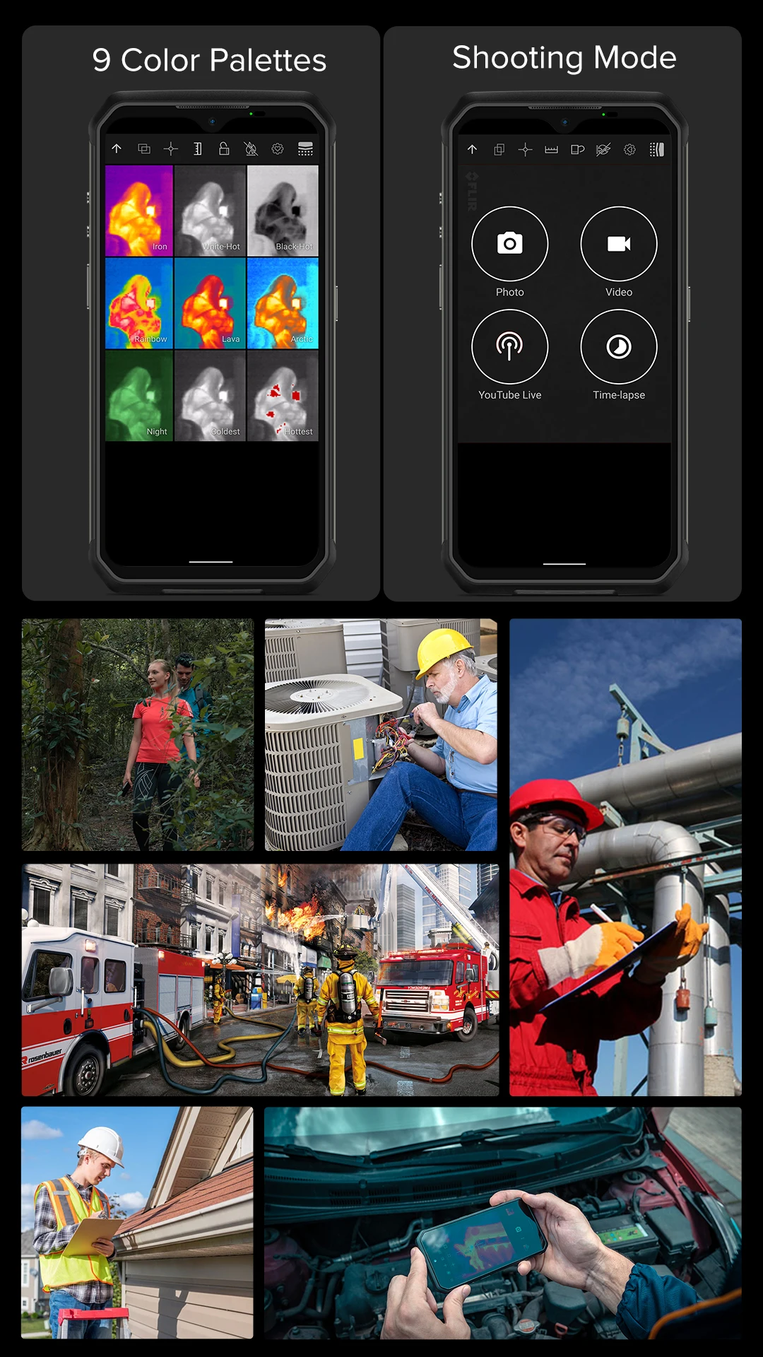La cámara termográfica FLIR integrada, con tecnología MSX, en los teléfonos inteligentes Ulefone Armor 9 puede detectar objetos en la escena y crear imágenes térmicas basadas en la temperatura. Podrá ver anomalías como la pérdida o ganancia de calor, encontrar animales o personas en la oscuridad y diagnosticar y resolver problemas rápidamente. Una cámara de imagen térmica puede jugar un papel importante en el mantenimiento eléctrico y de tuberías, aventuras al aire libre, rescates de emergencia y más.