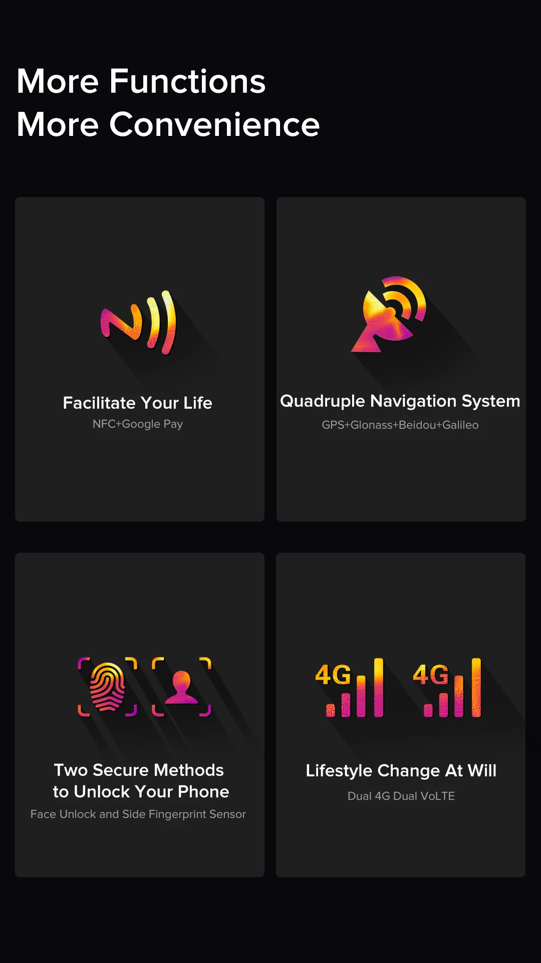 Armor 9 Equipa una pantalla nítida y vívida FHD + de 6,3 pulgadas con una relación pantalla-Cuerpo del 93.9%. Amplíe sus horizontes y sumérjase en sus videos y juegos favoritos como nunca antes. Junto con la alta resolución de 1080x2340 y la amplia gama de colores, le ofrecerá un rendimiento óptico excepcional, todo lo que vea en la pantalla del teléfono será lo más claro posible.