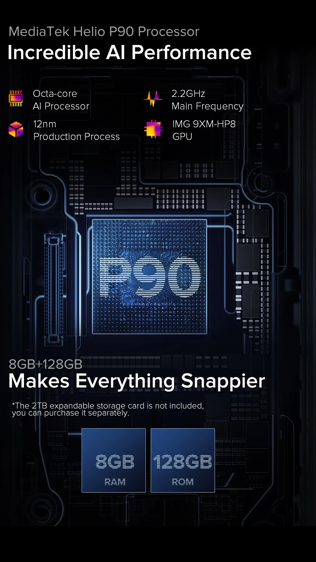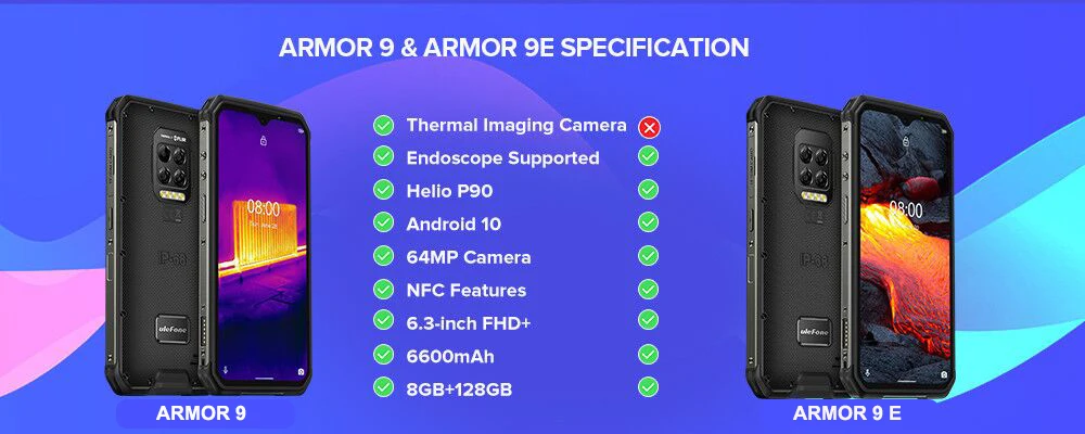 Armor 9 está impulsado por el SoC P-Series más potente de MediaTek, helio P90 que viene con un rendimiento 4,6 veces mayor que Helio P60 y P70 para que pueda realizar cualquier tarea mientras mantiene la eficiencia energética. Casi no hay retraso al cargar aplicaciones y cambiar entre la mayoría de las aplicaciones. No solo un procesamiento de IA más rápido, el versátil también puede proporcionar capacidades de imagen impresionantes y una experiencia fotográfica inigualable.
