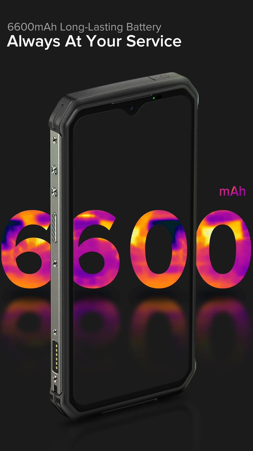 ¿Pasa la mayor parte de su tiempo al aire libre y espera que su teléfono tenga buena resistencia? No se preocupe, Ulefone Armor 9 puede satisfacer sus expectativas. Viene con una batería de 6600mAh en el interior y puede durar fácilmente aproximadamente dos días entre cargas, y se puede cargar completamente en 3 horas.
