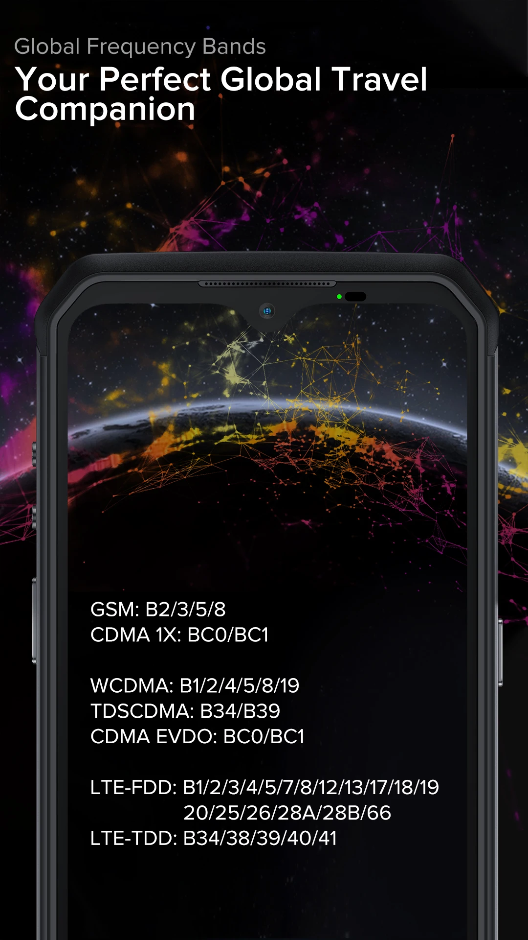Con más bandas de frecuencia compatibles, Ulefone Armor 9 se convierte en un verdadero teléfono global, lo que significa que puedes usar 90% áreas en todo el mundo. Armor 9 agrega una banda 4G adicional: la banda 66, lo que significa que el soporte de red para América del Norte lo hace aún más atractivo.