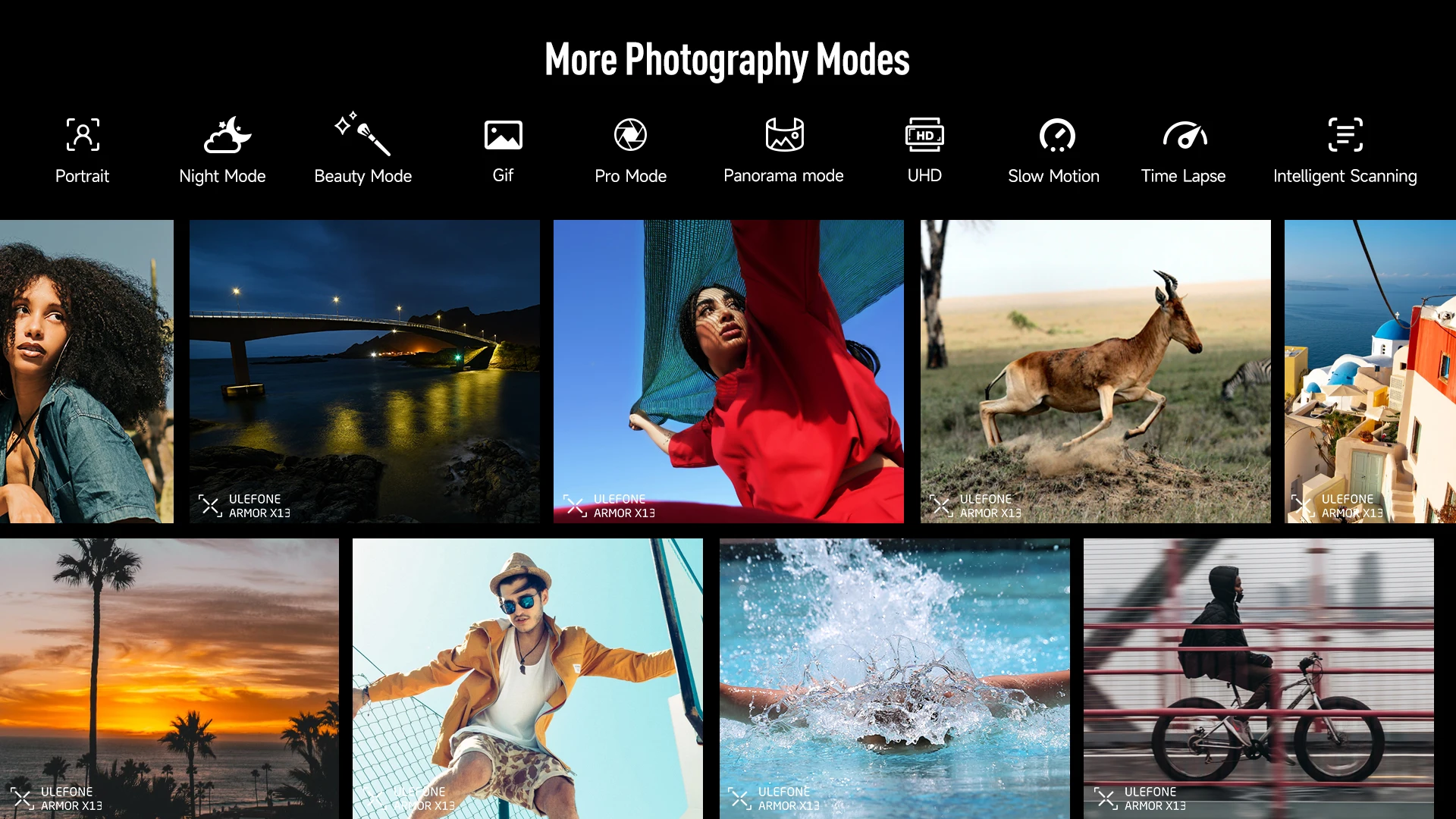 Modo Normal, modo de visión nocturna, Retrato, modo nocturno, modo de belleza, Gif, modo Pro, modo panorámico, UHD, cámara lenta, lapso de tiempo, escaneo inteligente