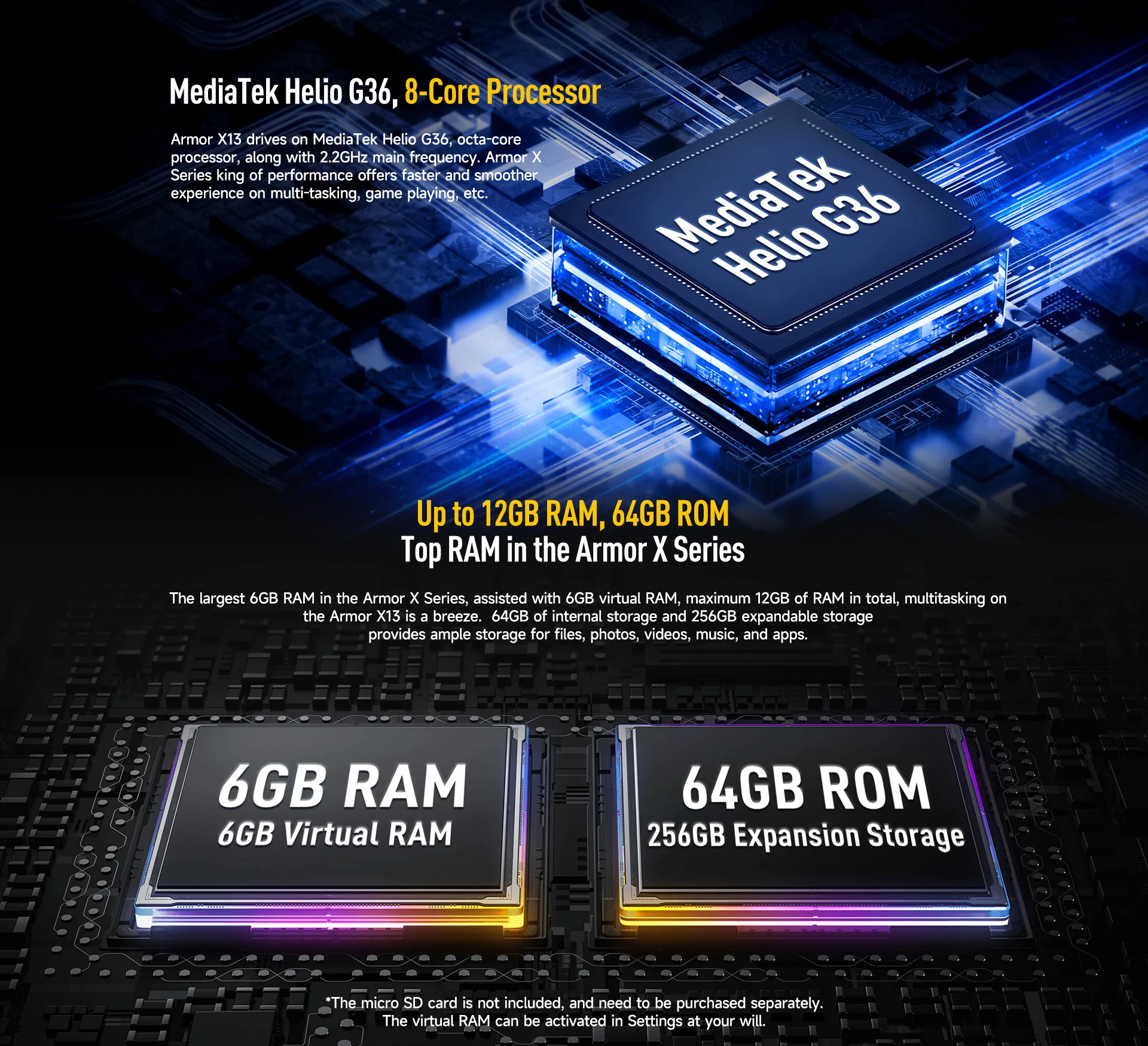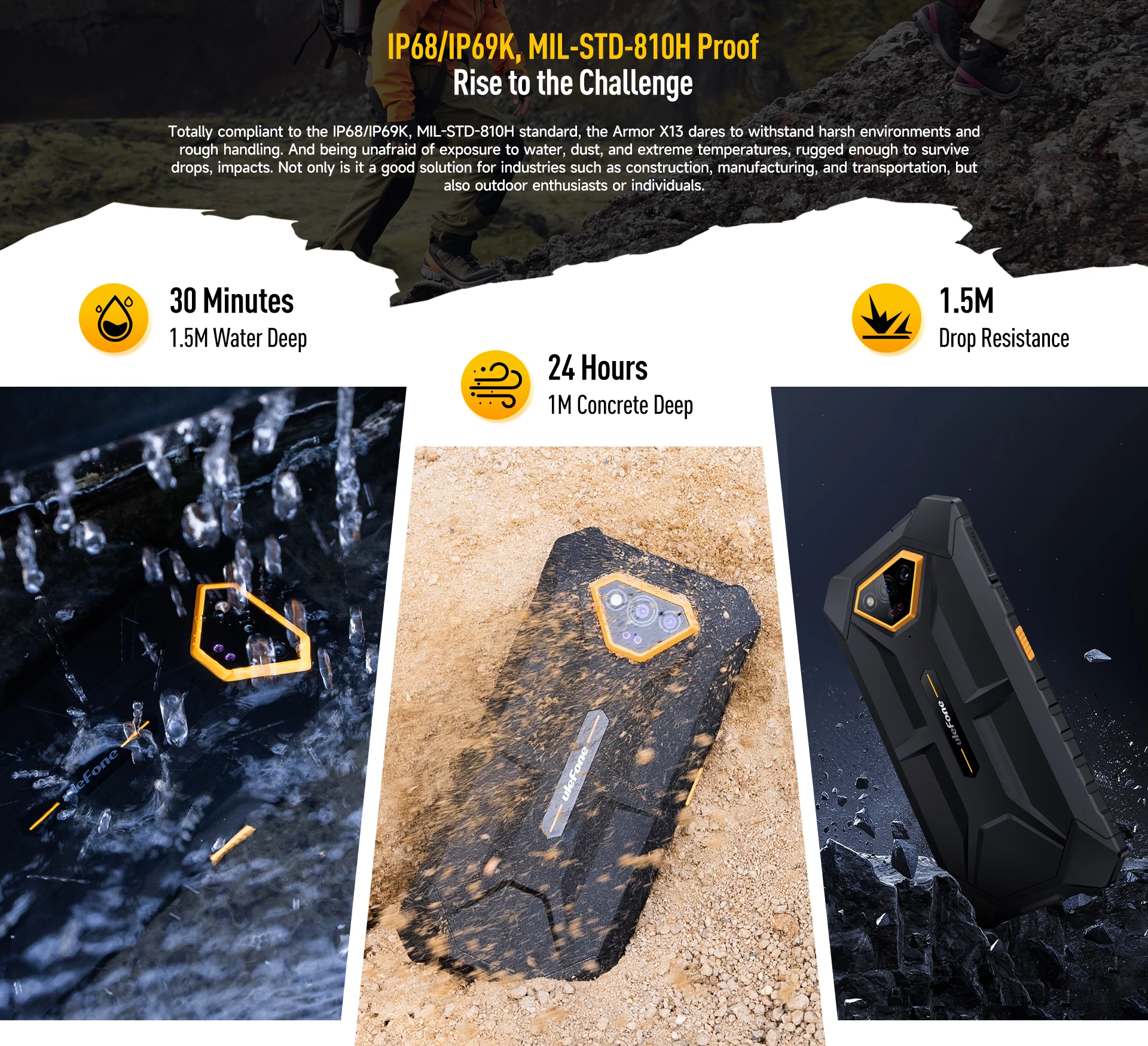 Comprar Ulefone-Armor X13, hasta 12GB + 64 GB, Android 13, 6320mAh, 50MP, 6,52 pulgadas, NFC, 4G ,GPS, versión Global