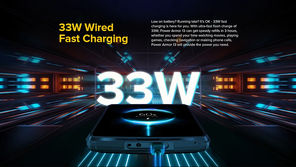 Low on battery? Running late? It’s OK - 33W fast charging is here for you. With ultra-fast flash charge of 33W, Power Armor 13 can get speedy refills in 3 hours, whether you spend your time watching movies, playing games, checking navigation or making phone calls, Power Armor 13 will provide the power you need.