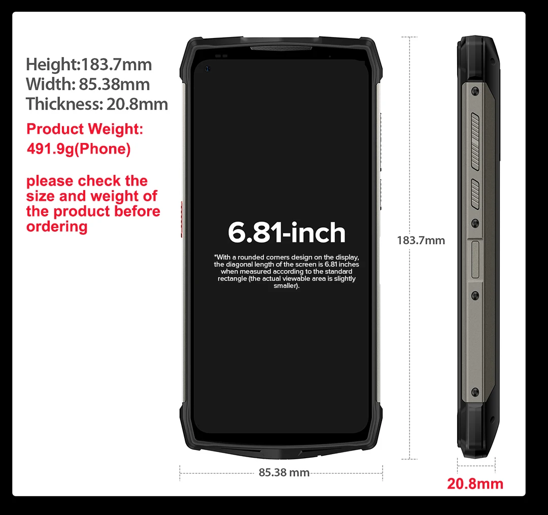 6.81-inch FHD+(With a rounded corners design on the display, the diagonal length of the screen is 6.81 inches when measured according to the standard rectangle (the actual viewable area is slightly smaller))