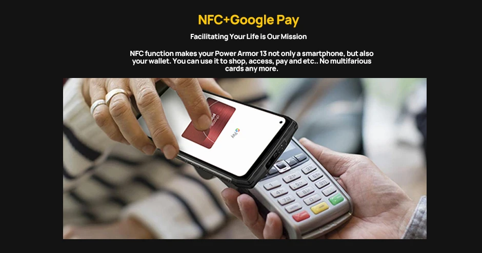 NFC function makes your Power Armor 13 not only a smartphone, but also your wallet. You can use it to shop, access, pay and etc.. No multifarious cards any more.