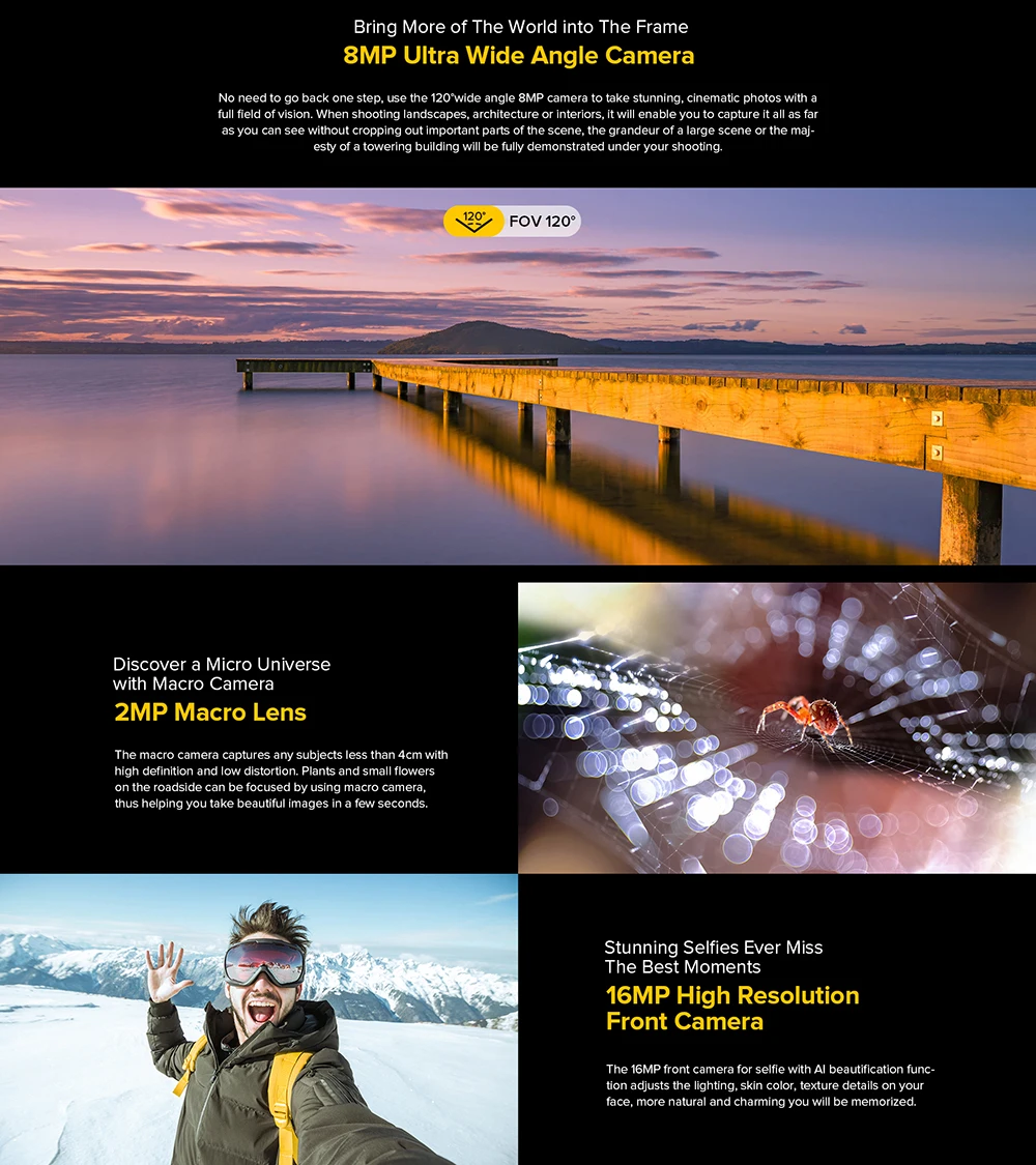 6.81-inch FHD+ screen bringing high screen-to-body ratio is a treat for the eye, delivering you immersive visual experience, stunning color and crisp images. Exquisite glass makes wonderful show fully and provides stunning look.