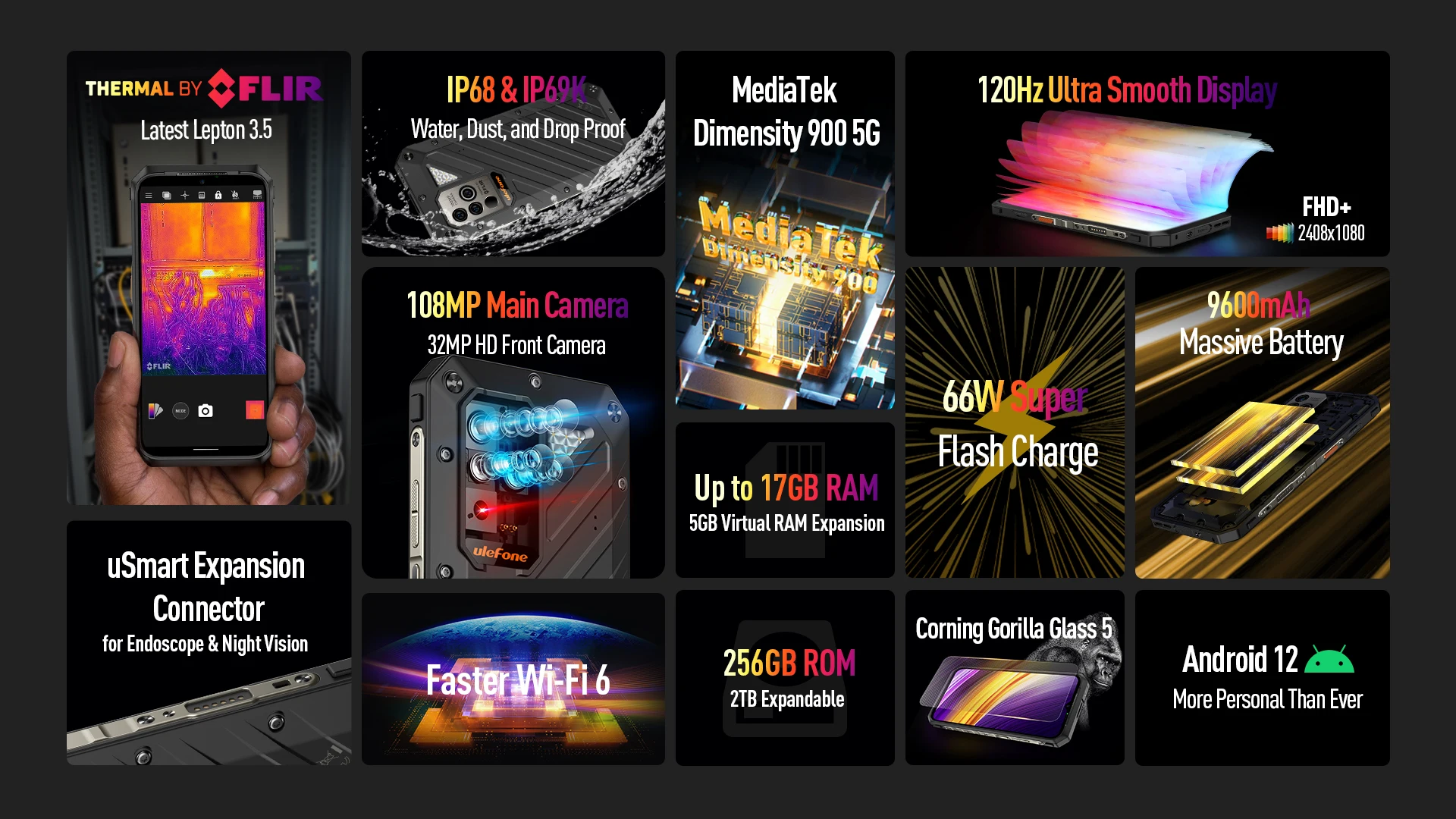 Comprar Ulefone Power Armor 18T cámara de imagen térmica para teléfono, resistente, estreno mundial®Dimensity 900 5G 9600mAh 66W