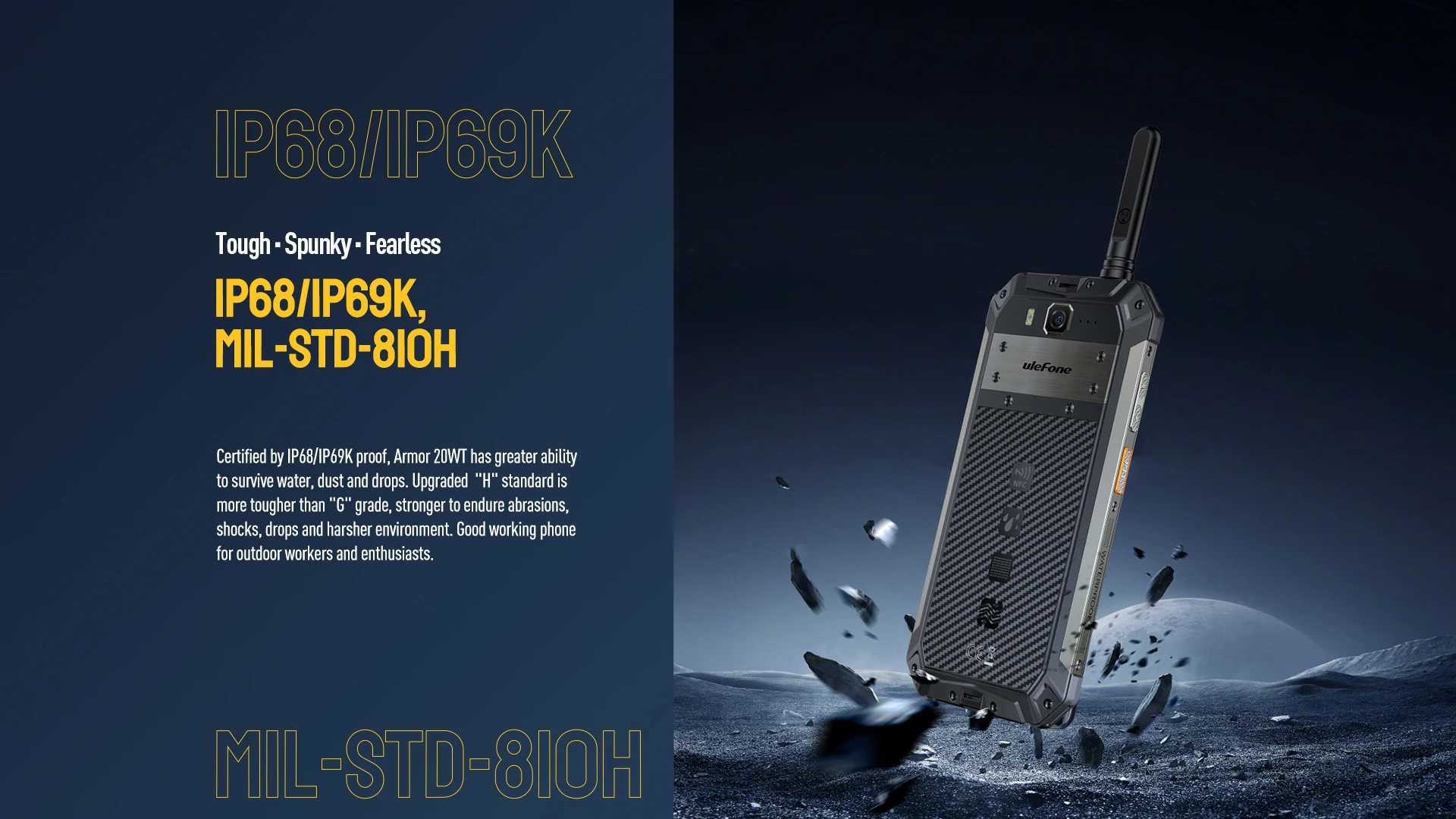 Certified by IP68/IP69K proof, Armor 20WT has greater ability to survive water, dust and drops. Upgraded "H" standard is more tougher than "G" grade, stronger to endure abrasions, shocks, drops and harsher environment. Good working phone for outdoor workers and enthusiasts.