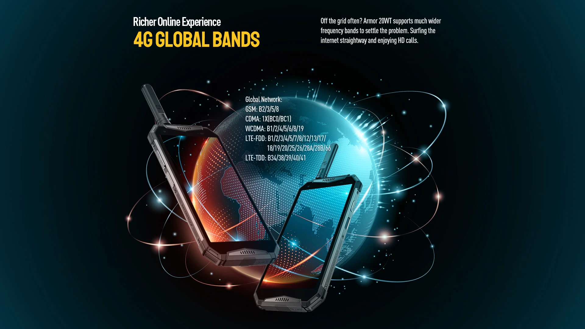 Off the grid often? Armor 20WT supports much wider frequency bands to settle the problem. Surfing the internet straightway and enjoying HD calls.