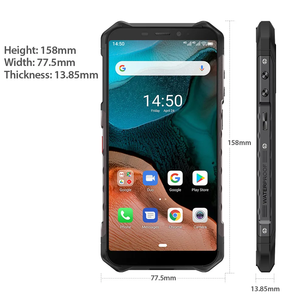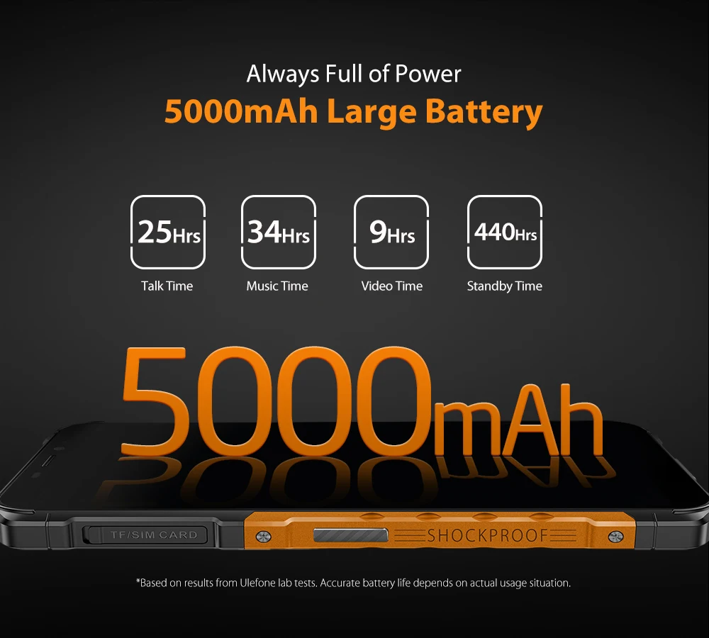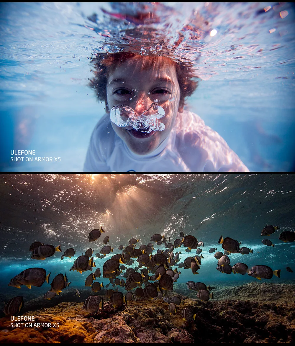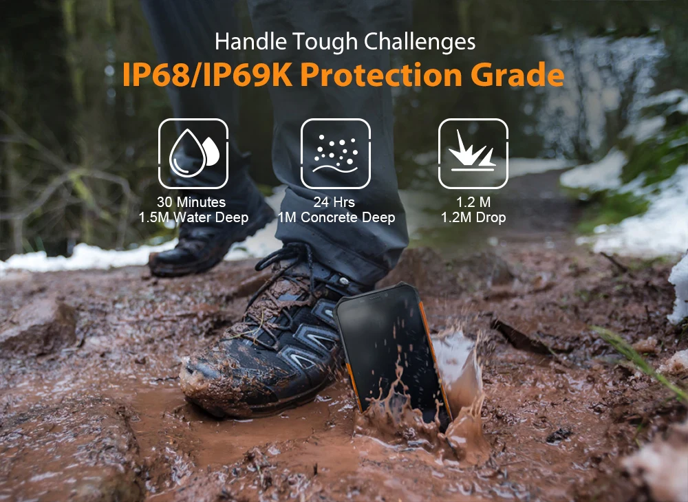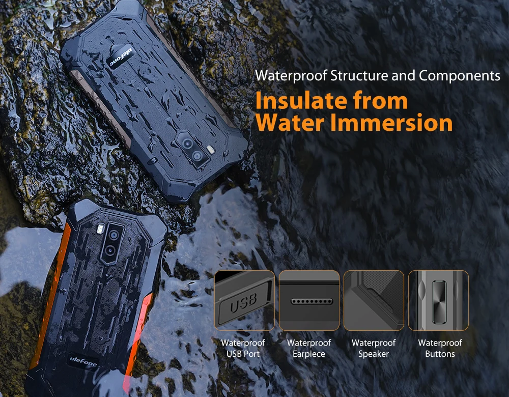 * El teléfono resistente Ulefone es resistente al agua y al polvo. Se probó con una calificación de IP68 en condiciones de laboratorio controladas según la norma IEC 60529 (profundidad máxima de 1,5 metros hasta 30 minutos). La resistencia al agua y al polvo no son condiciones permanentes, y la resistencia puede disminuir como resultado del desgaste normal. No intente cargar un teléfono mojado; consulte la Guía del usuario para obtener instrucciones de limpieza y secado. Los daños por líquidos no están cubiertos por la garantía.